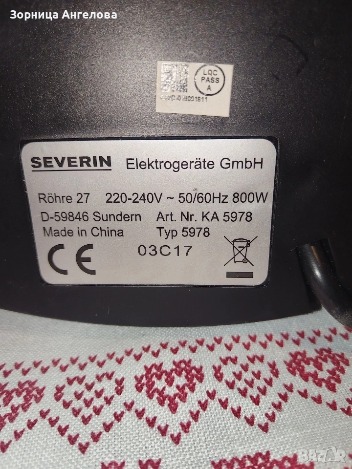 Кафемашина SEVERIN – еспресо + пара за мляко.За еспресо, капучино, лате. Закупена е от Германия.