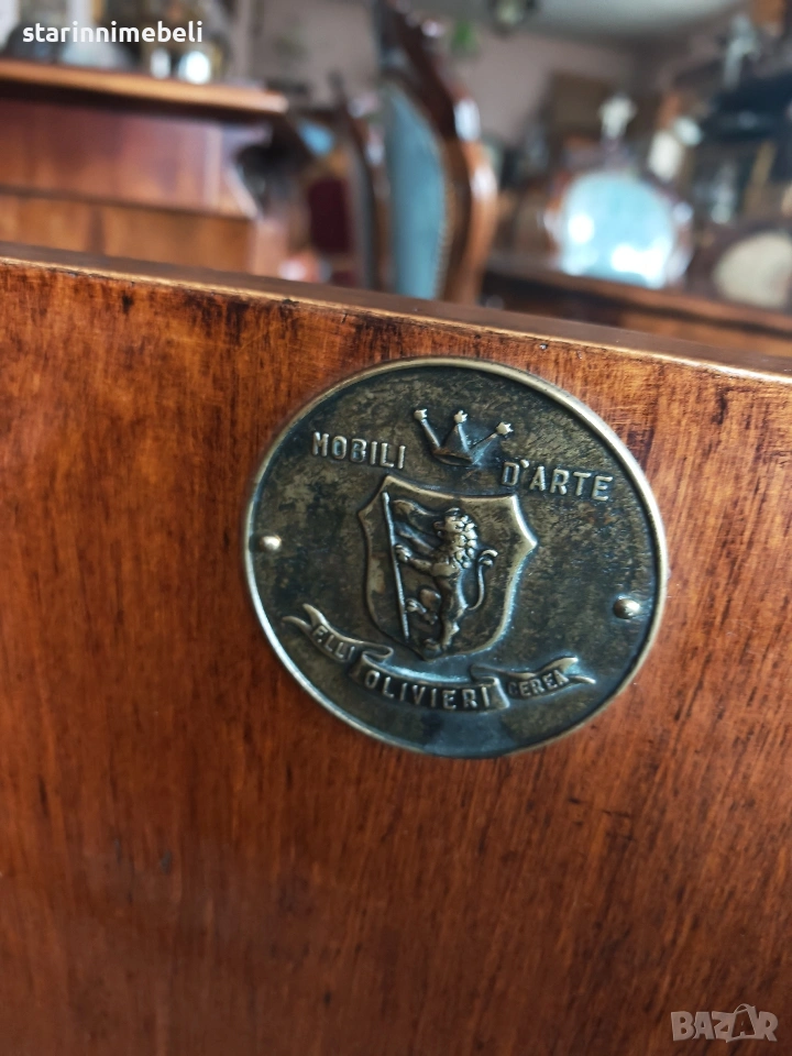 ​Продавам масивен италиански скрин от висок клас, дело на реномираните майстори F.lli Olivieri. Мебелта е с доказан произход (наличен метален печат за автентичност).