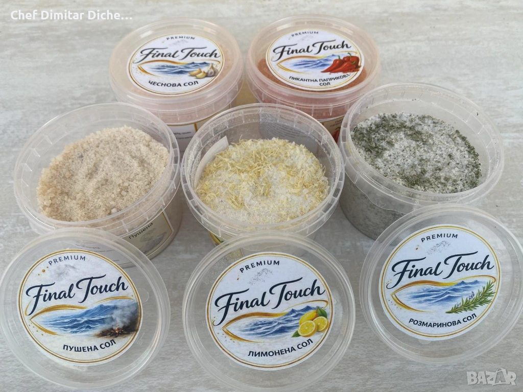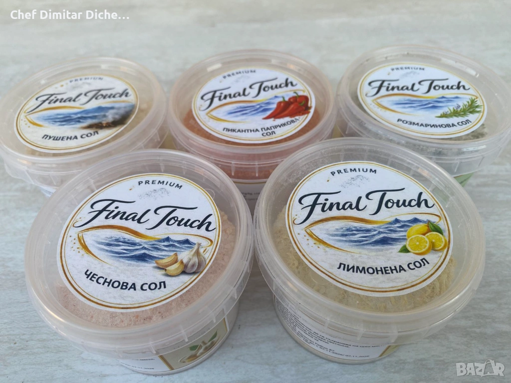 Комплект гурме сол “Final Touch” - 5 вкуса - чеснова, розмаринова, пушена, пикантна паприкова с кайенски пипер и лимонена сол
