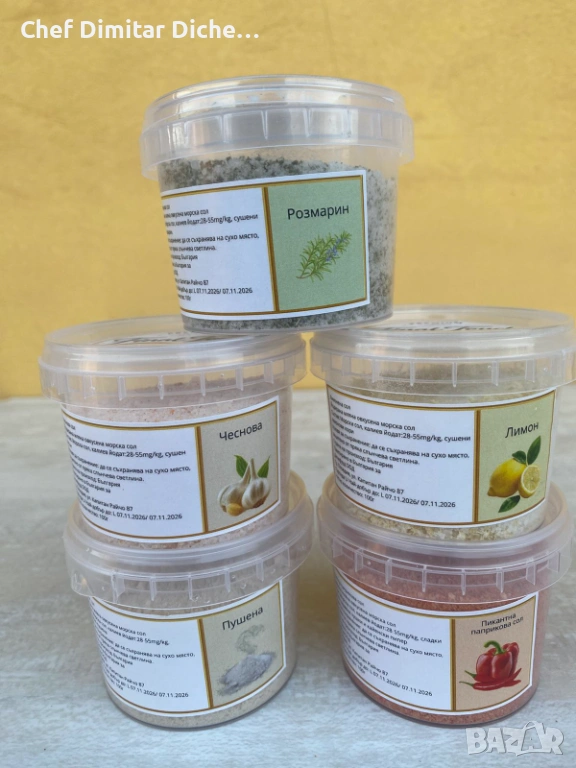 Морска сол със сушени лимонови кори. Свеж цитрусов акцент за риба, морски дарове, пилешко, салати и печени зеленчуци.
