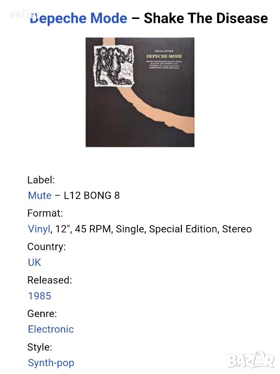 Depeche Mode – Shake The Disease Maxi Single 12 Издание 🇬🇧 UK 1985г Максито е с 4 песни Състояние → Обява 53649742