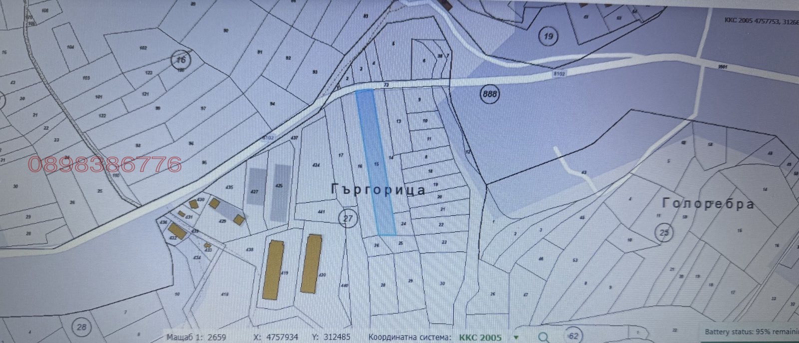 Парцела е равен с лице на асфалтов път с правоъгълна форма.