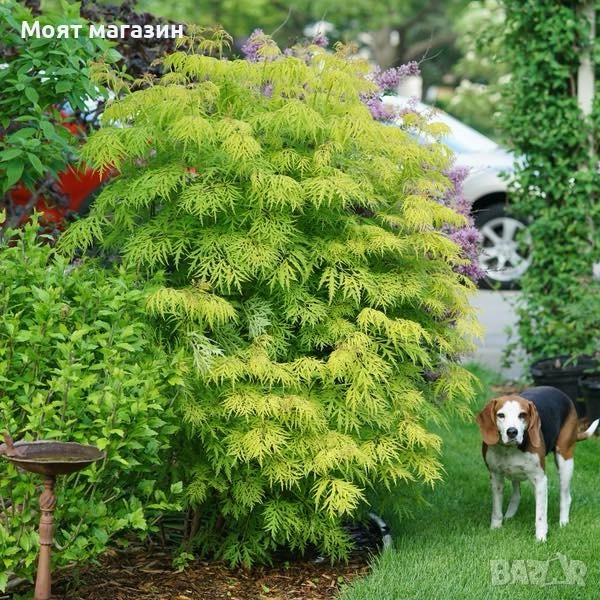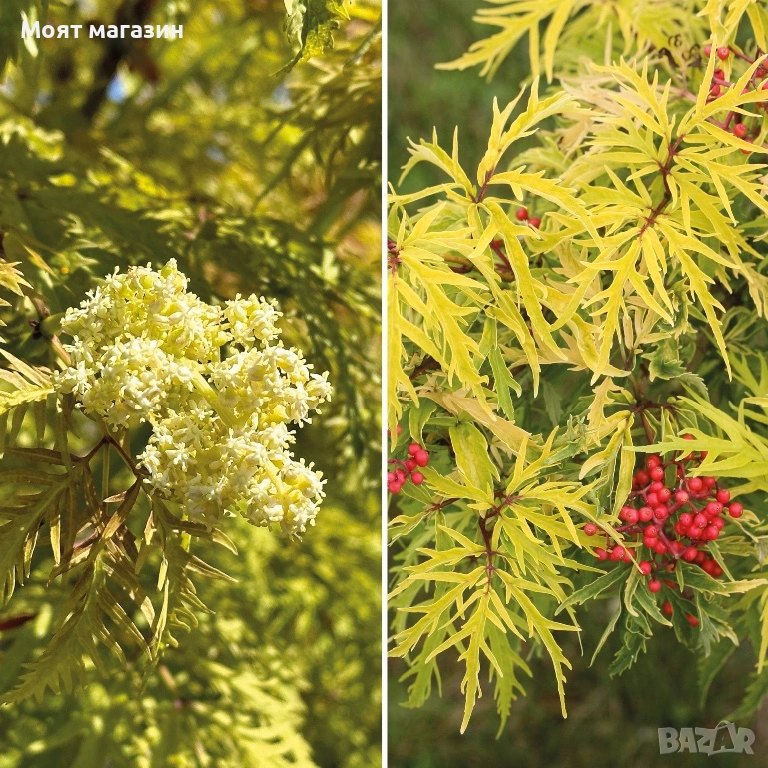 Червен бъз Lemony Lace – декоративен храст с лимоненожълта окраска Цена 12,99 € Sambucus racemosa ‘Lemony Lace’ е изключително декоративен, листопаден храст, известен със своите фино нарязани, лимоненожълти листа, които създават ефект „дантела“. Новият прираст често е с леко червеникав оттенък, което прави растението още по-атрактивно през пролетта. През ранна пролет храстът се покрива с кремаво-бели цветове, последвани от яркочервени декоративни плодчета, които привличат птици и внасят цвят в градината до късно лято. Характеристики: Височина: 1.2 – 2 м в зряла възраст Ширина: 1 – 1.8 м Цвят на листата: лимоненожълт, силно нарязан Цъфтеж: ранна пролет Плодове: декоративни, червени Светлина: слънце до лека полусянка Почва: добре дренирана, непретенциозна Студоустойчивост: много добра Устойчивост: подходящ за райони с диви животни (еленоустойчив) Предимства: Уникален ярък цвят през целия сезон Подходящ за солитер, бордюри, декоративни композиции Ниска поддръжка Бърз растеж и силно декоративна стойност ⚠ Плодовете не са за консумация. Растенията са в контейнери, което позволява засаждането им да се извършва почти целогодишно. Много от растенията променят вида си през периодите на своята вегетация, но тук в сайта със снимки се представят в най-атрактивния им вид. Повечето снимки в сайта ни покзват как ще изглеждат растенията след определен период и положени необходимите грижи. Моля разгледайте и другите ни растения в сайта. Благодарим че избрахте нас 😊 Тел. 0877977519