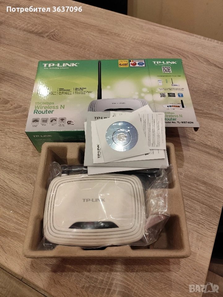 Рутер TP-Link TL-WR740N 150Mbps, снимка 1 - Рутери - 53650279 Рутер TP-Link TL-WR740N 150Mbps, снимка 2 - Рутери - 53650279 Рутер TP-Link TL-WR740N 150Mbps, снимка 3 - Рутери - 53650279 1/3