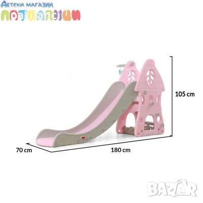 Със своя свеж розов дизайн и вграден баскетболен кош, тази пързалка е идеалното допълнение към всяка детска стая, двор или градина.