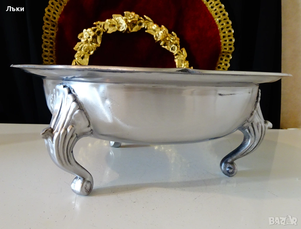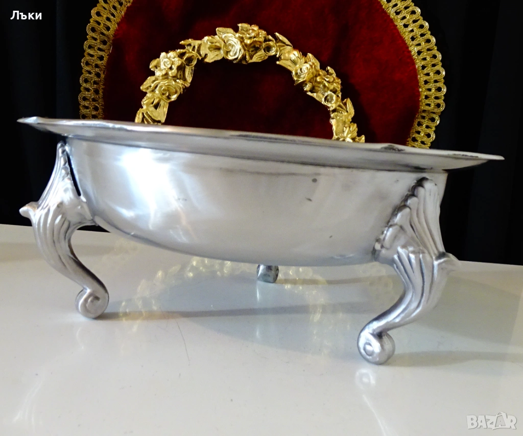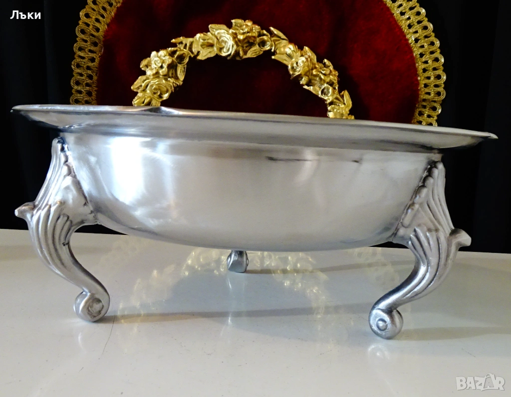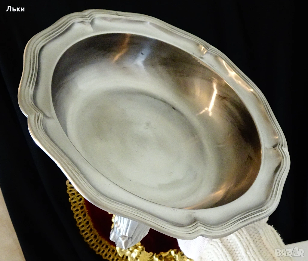 във викториански стил.Много ефектен,масивен,вечен съд за сервиране със сребърен