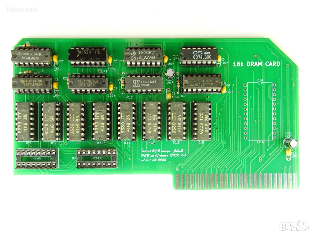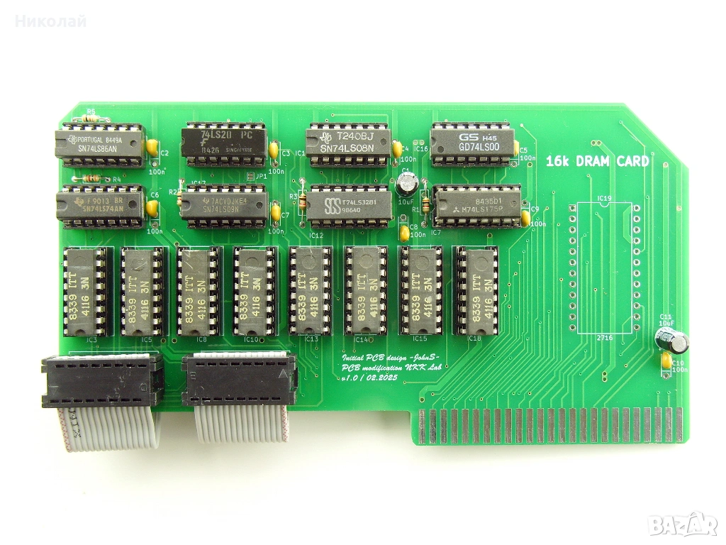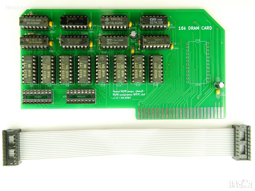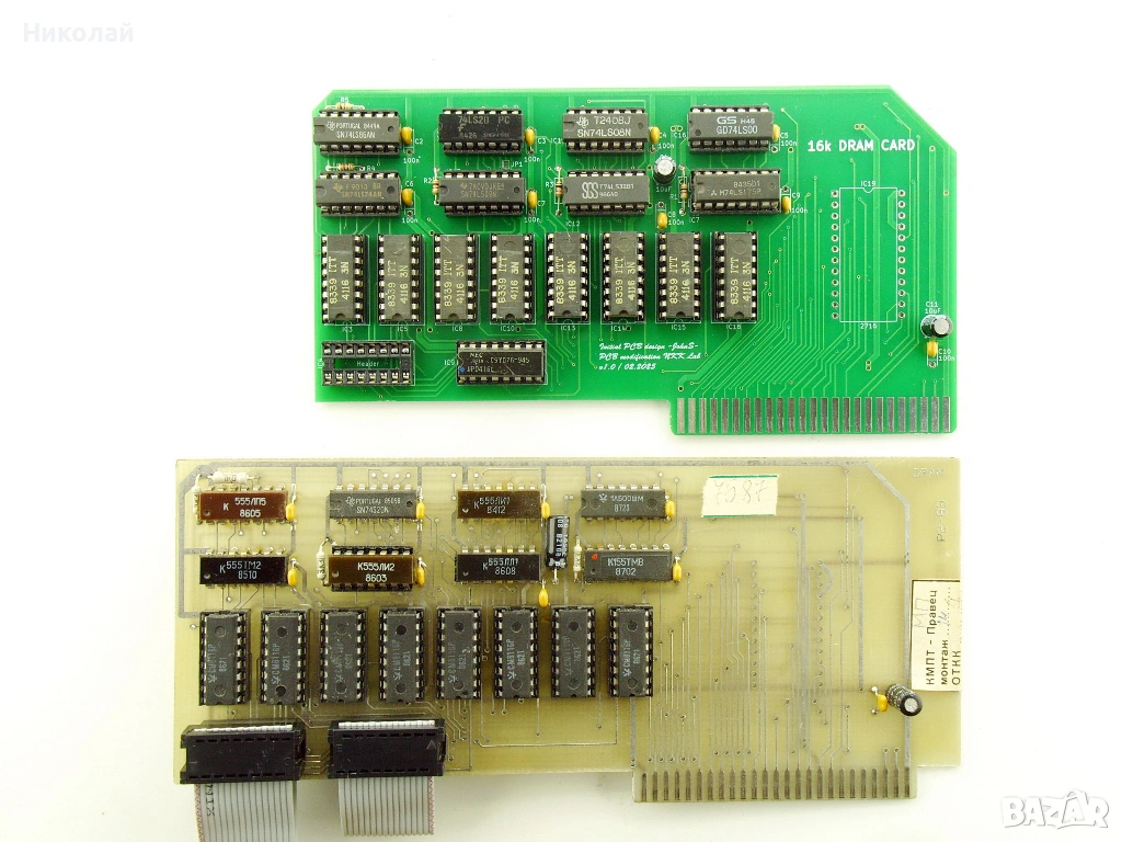Продавам RAM карта (Language card) 16K за компютър Правец 82. Ново производство, включва и лентовото кабелче. Последната снимка е само за сравнение на размерите между платката която предлагам и оригиналната правешка платка.