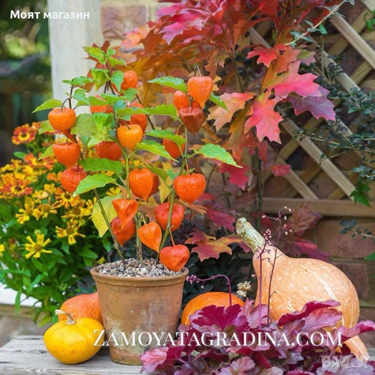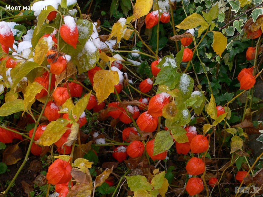 Физалис (Мехунка) Студоустойчива и Ядлива 🏷️ Кратко описание: Цена 5,49 € Студоустойчив физалис – екзотично, но лесно за отглеждане растение с вкусни, златисто-оранжеви плодове, обвити в хартиена „мехунка“. Подходящ за български климат и издържа на по-ниски температури от обикновените сортове. 🌿 Характеристика: Вид: Physalis pubescens (космат физалис) Тип растение: Едногодишно / в топли райони – многогодишно Максимална височина 60–100 см Плод: Оранжев, сладко-кисел, с аромат на ананас и домат Срок на зреене: 70–90 дни след разсаждане 🌾 Отглеждане: Сеитба: Разсад – март–април; засаждане навън – след преминаване на сланите Място: Слънчево, топло, защитено от силен вятър Почва: Лека, плодородна, добре дренирана Поливане: Умерено, без преовлажняване Грижи: Минимални – подходящ и за начинаещи градинари 🍊 Предимства: Студоустойчив и адаптиран към българските условия Богат на витамини C и A, антиоксиданти и пектин Подходящ за прясна консумация, конфитюри, сушене или украса Плодовете са сладки и дълготрайни – съхраняват се в мехунките над месец 🌱 Засаждане и добив: Разстояние: 40 × 50 см Добив: До 1,5–2 кг плодове от растение Реколта: Юли – октомври 🧺 Подходящ за: Домашни градини, оранжерии, саксии, биопроизводство и декоративни лехи. Растенията са в контейнери, което позволява засаждането им да се извършва почти целогодишно. Много от растенията променят вида си през периодите на своята вегетация, но тук в сайта със снимки се представят в най-атрактивния им вид. Повечето снимки в сайта ни покзват как ще изглеждат растенията след определен период и положени необходимите грижи. ПОЛЗИ- Физалисът е изключително полезен, богат на антиоксиданти, витамини (C, A, B комплекс) и минерали (желязо, калций, калий). Подсилва имунитета, подобрява храносмилането, регулира кръвната захар, намалява лошия холестерол и допринася за здравето на кожата, костите, зрението и сърцето, като същевременно помага за контрол на теглото благодарение на високото съдържание на фибри и ниска калоричност. Основни ползи Имунитет: Високото съдържание на Витамин C подсилва имунната система. Антиоксидантна защита: Предпазва клетките от свободни радикали, намалява риска от сърдечни заболявания, има противовъзпалителни свойства. Храносмилане: Фибрите подобряват чревната флора и храносмилането. Контрол на теглото: Нискокалоричен, богат на фибри, дава ситост, помага при отслабване. Кръвна захар: Помага за регулиране на нивата ѝ, което е полезно при диабет. Холестерол: Пектинът в него намалява LDL холестерола ("лошия"). Здраве на костите: Съдържа калций и други минерали, важни за костната плътност. Здраве на кожата и зрението: Витамини A и C, както и антиоксиданти, допринасят за здрава кожа и добро зрение. Енергия: Естествените захари и витамини осигуряват бърз прилив на енергия. Чернодробна функция: Подпомага здравето на черния дроб. Хранителен състав (на 100g) Витамини: C, A, P, B комплекс. Минерали: Желязо, калций, калий, фосфор, магнезий. Фибри, Протеини, Въглехидрати, Вода. Физалисът е ценна и вкусна добавка към диетата, предлагаща множество ползи за цялостното здраве, а в народната медицина се използва от векове, като съвременните изследвания потвърждават много от тези свойства. Моля разгледайте и другите ни растения в сайта. Благодарим че избрахте нас 😊 Тел. 0877977519