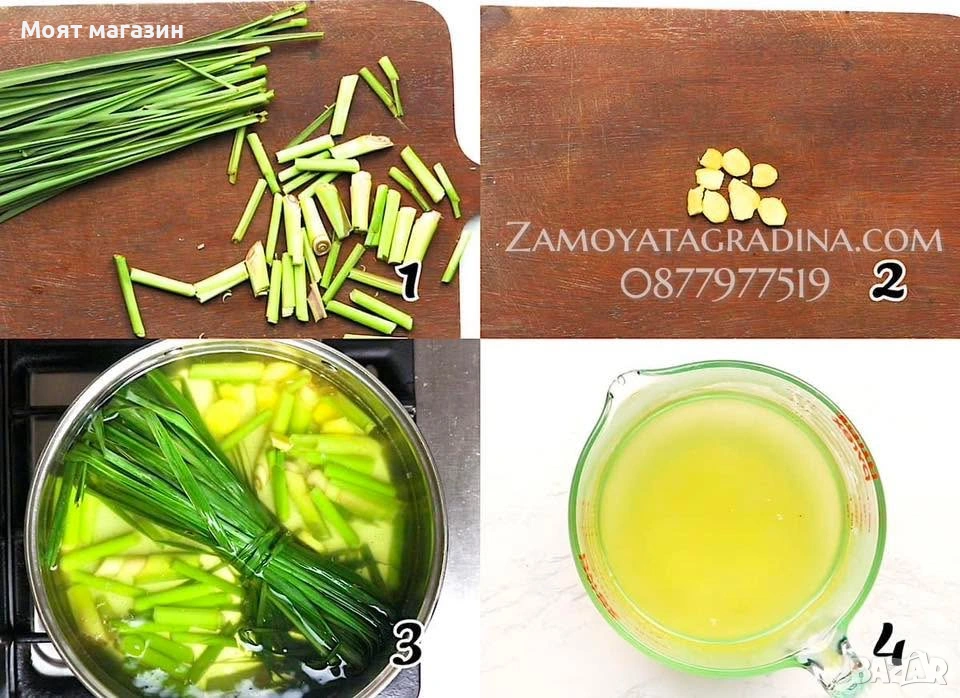 Цена за 1бр. 8€ Начин за приготвяне на чуден чай с лимонена трева и още нещо - Използвам както стъблата, така и листата за оптимален вкус. Джинджифил – Това е по избор, но киселият вкус на джинджифила допълва лимонената трева прекрасно. Пресен корен от джинджифил или смлян джинджифил и двете работят добре. Подсладител – Обичам естествени подсладители като мед или кленов сироп. Кафява захар обаче също се съчетава добре с лимонената трева. Цитрус – Лимонът и лаймът добавят пикантен тласък и цитрусов тласък. Мисля, че портокалът също би се съчетал добре. Измиване – Изплакнете и отстранете всички сухи или твърди външни слоеве от стъблата и листата на лимонената трева. Нарязване – Отрежете кореновия край и горната част на стъблото, оставяйки нежната, бледожълта основа и зелената горна част. На дъска за рязане нарежете ситно стъблата на по-малки парчета. Нарежете джинджифила. Усукване – Сгънете листата на дължина, която ще пасне на тенджерата, която използвате, и усучете. Усукването освобождава повече вкус от лимонената трева. Сварете вода – Напълнете тенджера с вода според броя чаши, които възнамерявате да приготвите, и колко силен искате да бъде вашият чай. Поставете тенджерата на котлона и оставете водата да заври. Запарване – След като водата заври, добавете нарязаните стъбла от лимонена трева, усуканите листа и нарязания джинджифил в тенджерата. Намалете котлона на средно-слаб и оставете да къкри 5-10 минути. Прецедете – Свалете тенджерата от котлона и внимателно прецедете чая през цедка, като изхвърлите парчетата лимонена трева и резенчетата джинджифил. Сервиране – Изсипете чая в чаша и добавете захар или мед на вкус. Можете да изстискате малко лимонов сок и да го гарнирате с резенчета лимон или лайм. Разбъркайте внимателно, за да се смесят съставките, като се уверите, че вкусовете са добре разпределени. Описание - Лимонена трева – Разсад Цена за 1бр 8 € Какво е лимонена трева Ароматно растение, често използвано в азиатската кухня – особено в тайландската, виетнамската и индийската. Има силен лимонов аромат и леко пикантен вкус. Използва се в чайове, супи, къри и други ястия. Известна е и със своите лечебни свойства – например за облекчаване на храносмилателни проблеми или при настинки. Как изглежда: Високи, тънки стъбла – подобни на трева. Външните листа са твърди, но вътрешната част е мека и ароматна – тя се използва най-често при готвене. Растенията са в контейнери, което позволява засаждането им да се извършва почти целогодишно. Много от растенията променят вида си през периодите на своята вегетация, но тук в сайта със снимки се представят в най-атрактивния им вид. Повечето снимки в сайта ни покзват как ще изглеждат растенията след определен период и положени необходимите грижи. Моля разгледайте и другите ни растения в сайта. Благодарим че избрахте нас 😊 Тел. 0877977519