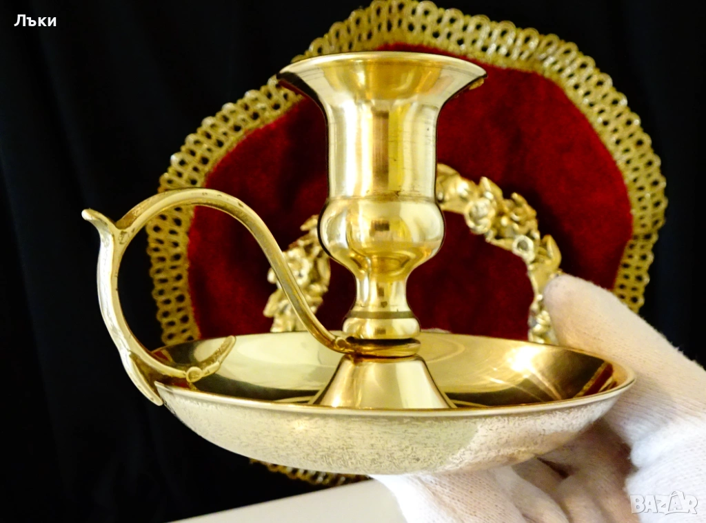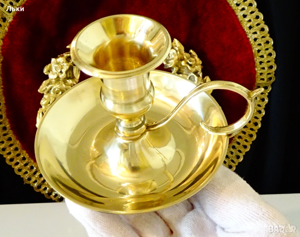 Стар свещник с дръжка,свещник с
