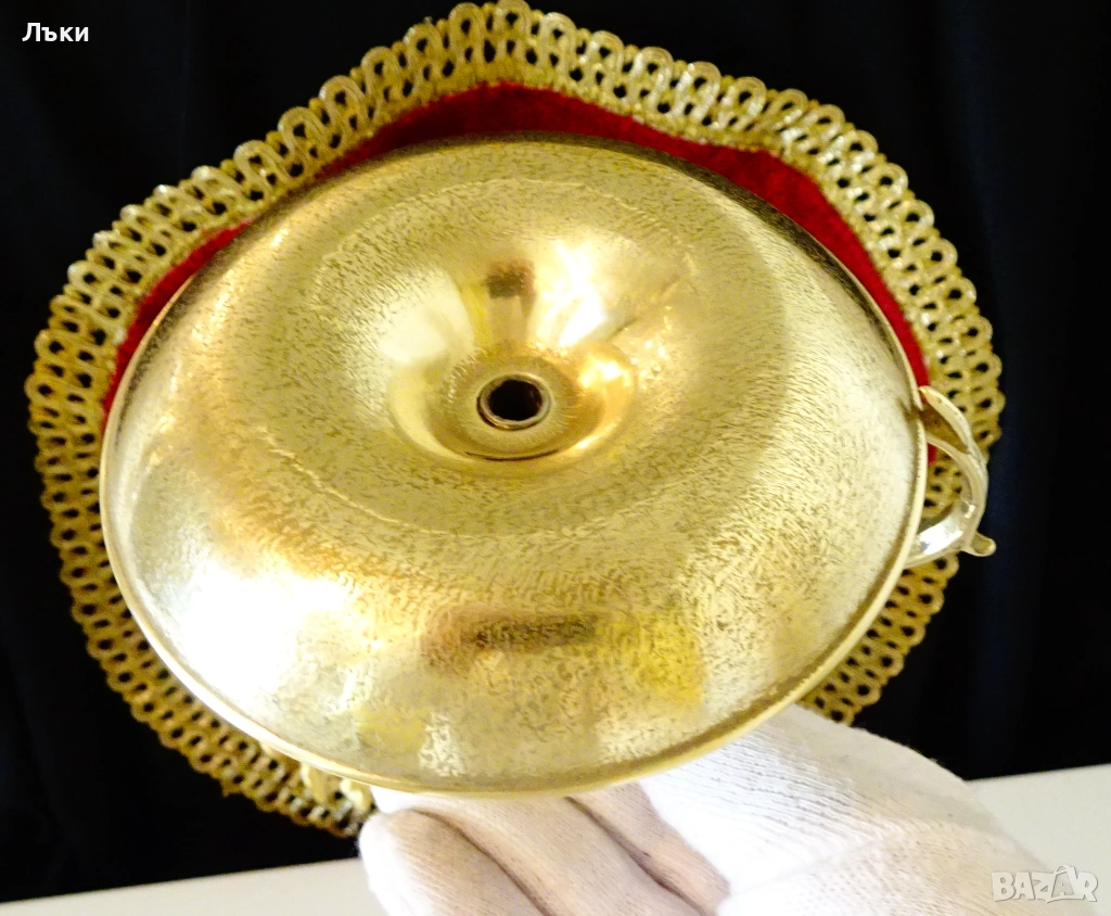 масивен бронз,като златен.Има красива и удобна барокова дръжка.Височина 11 см.,диаметър