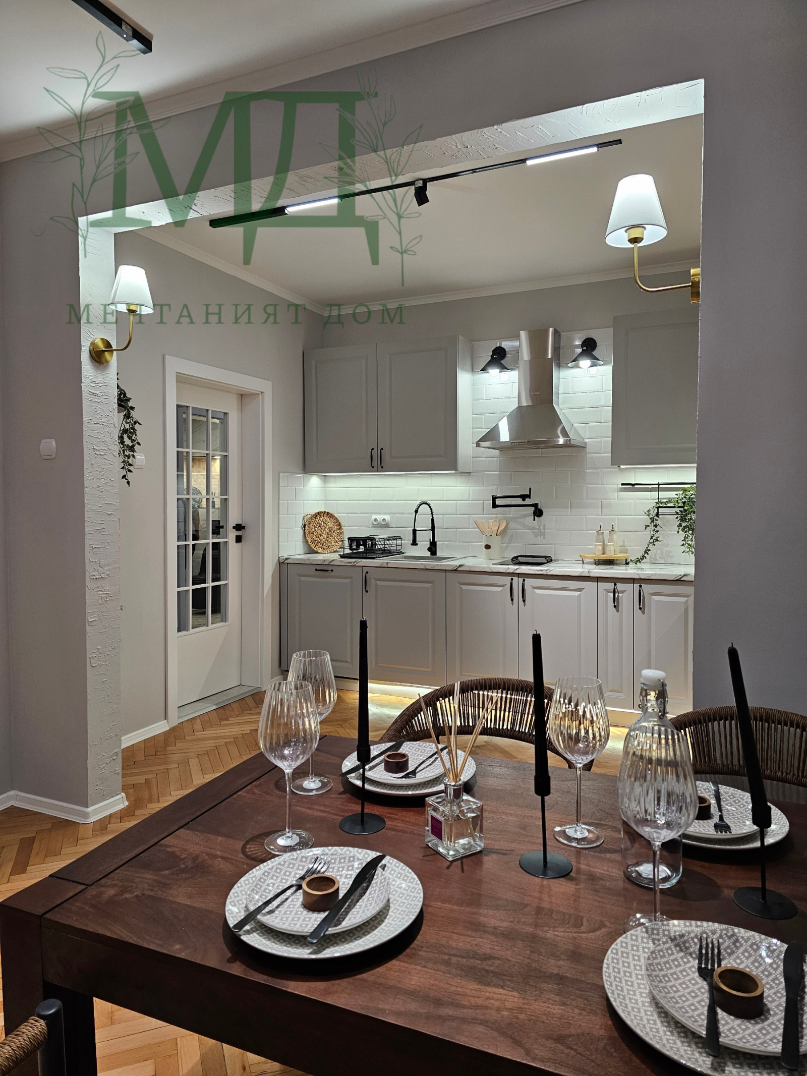 Предимства: Цялата ВиК и Ел. инсталация е подменена. Нови вътрешни врати. Сменена дограма. Поддържани общи части и асансьор. Дизайнерски проект и обзавеждане. Комуникативен район с множество транспортни връзки. Жилището е готово за нанасяне - подходящо както за семейно жилище, така и за инвестиция с отличен потенциал за отдаване под наем.