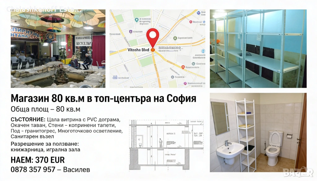 Магазин 80 кв.м в топ-центъра на София: Витоша / Алабин