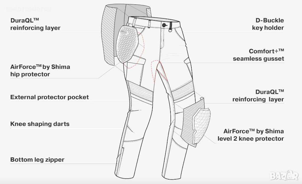 Панталоните GIRO URBAN гарантират изключителна защита за долната част на тялото, благодарение на дишащите протектори за колене Level 2 и бедра Level 1 от линията AirForce™ by SHIMA. Нещо повече, протекторите се закрепват с велкро и можете да ги регулирате точно според вашите предпочитания! Този дизайн повишава нивото на безопасност и комфорт при носене. Комбинацията от доказаните протектори AirForce™ с устойчивия на износване и разкъсване материал DYNEEMA® и влакната COOLMAX® осигурява превъзходна защита и максимален комфорт.