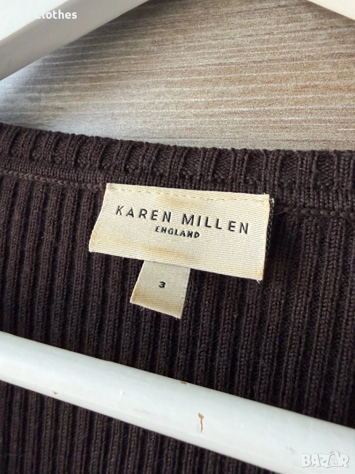 Karen Millen England - кафява рокля плетиво от 82% вълна, 16% полиамид и 2% еластан.
