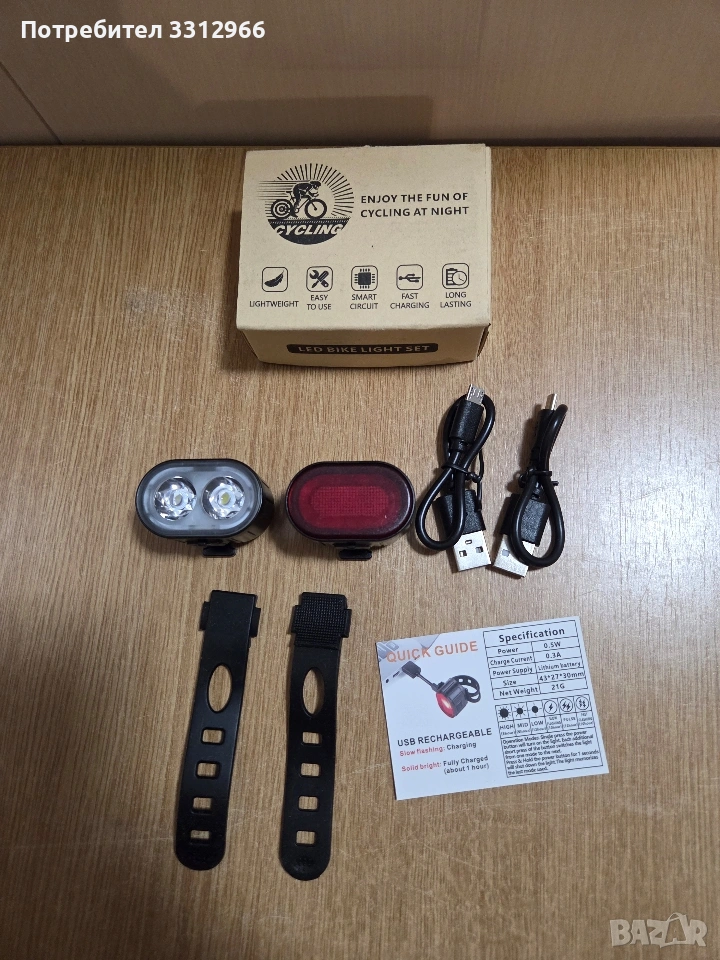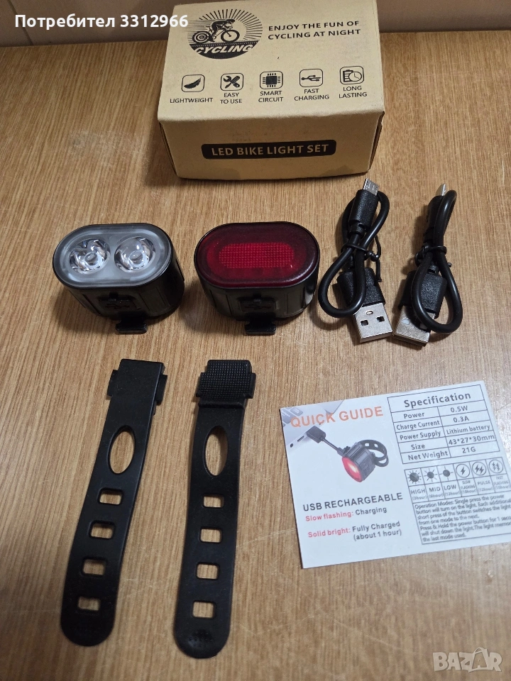 Чисто нов комплект LED светлини за велосипед с USB зареждане. , снимка 1 - Аксесоари за велосипеди - 53651255 Чисто нов комплект LED светлини за велосипед с USB зареждане. , снимка 2 - Аксесоари за велосипеди - 53651255 1/2