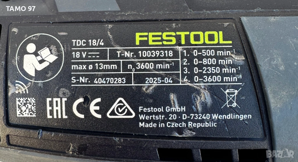 Продавам 4-ри скоростен мощен безчетков винтоверт на Festool в отлично визуално състояние, както се вижда на снимките и работи брилянтно. Оригинално чешко производство от 2025г внос от Франция. Обявената цена е за само машината без батерии и зарядно. Пращаме с опция преглед и тест с куриерска фирма еконт може и лично предаване за гр. Шумен. Магазинската цена е: 425евро