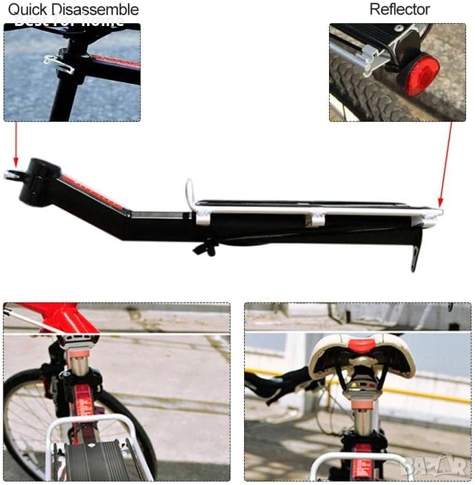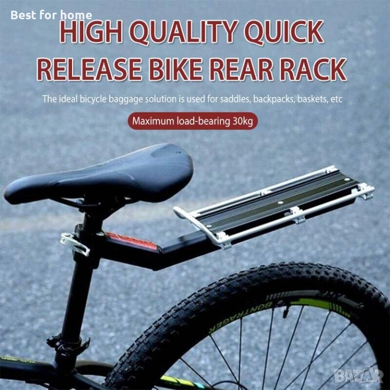 Заден багажник за велосипеди, изработен от висококачествена алуминиева сплав. Устойчив на корозия, по-издръжлив, по-лек.