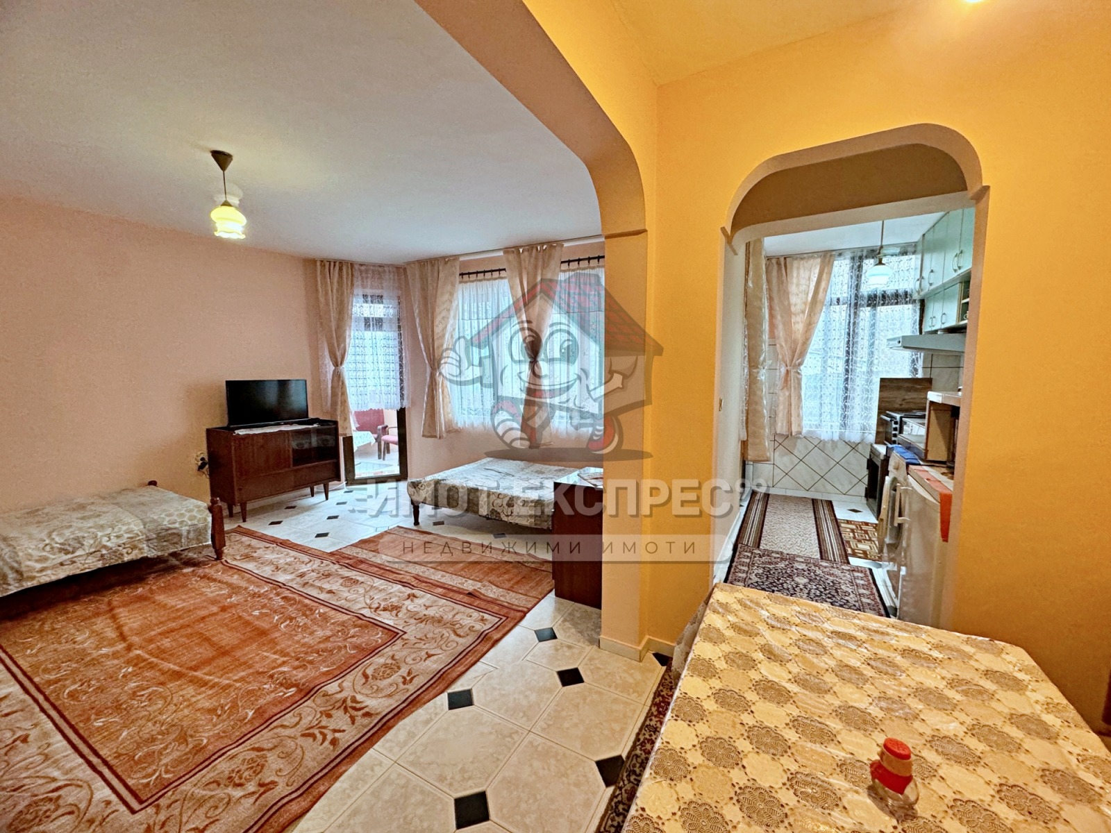 Обзаведен тристаен апартамент, състоящ се от голяма всекидневна, с две легла и трапезна маса със столове, с кухненски бокс, спалня, баня и тоалетна отделно, голяма закрита тераса. Апартаментът е в хубав район, в близост до магазини, заведения, пазар, супермаркети.