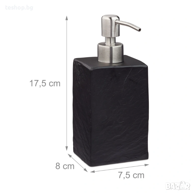 Дозатор за сапун с вид на камък, правоъгълен, черен Relaxdays лукс колекция