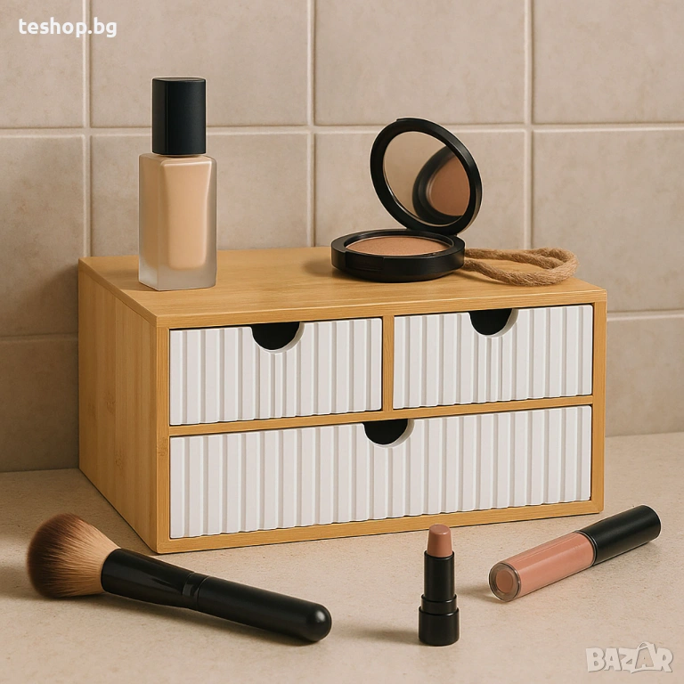 Органайзер за бюро с ребристи чекмеджета бамбук Relaxdays