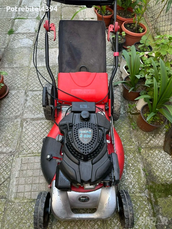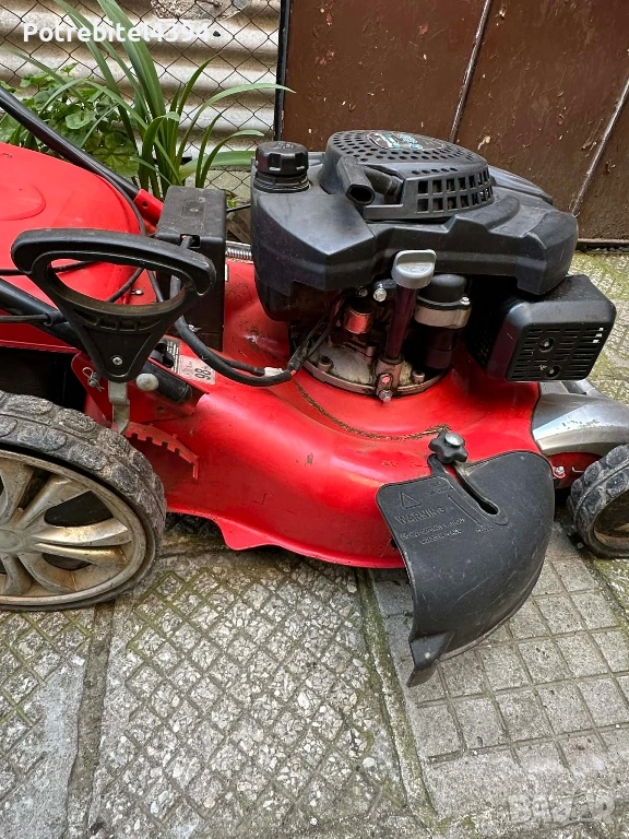 Ширина на косене 56 см – подходяща за малки и големи дворове и площи. Голям кош за трева, здрава конструкция. Машината е пали и работи отлично.