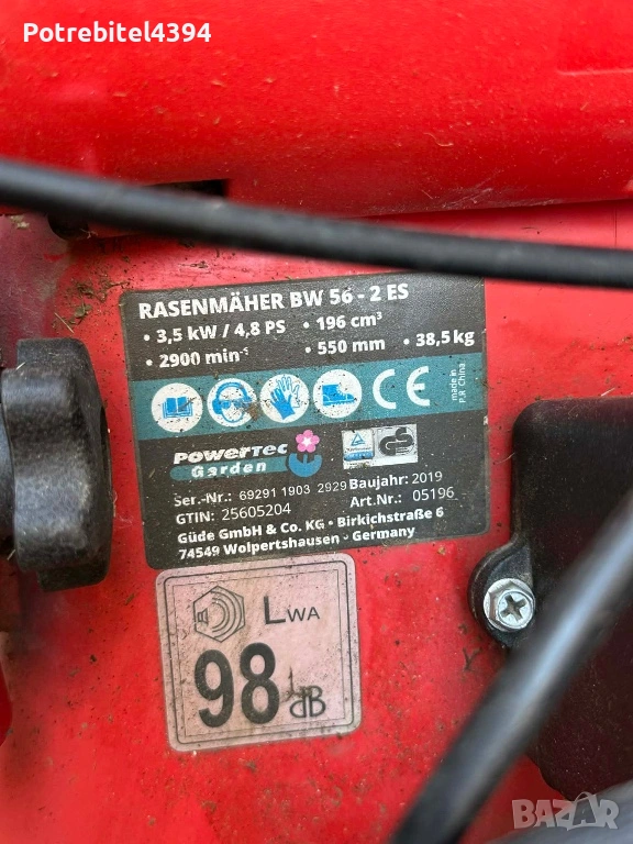 Продавам мощна бензинова самоходна косачка PowerTec Garden BW 56-2 ES (196cc, 4.8 к.с.).