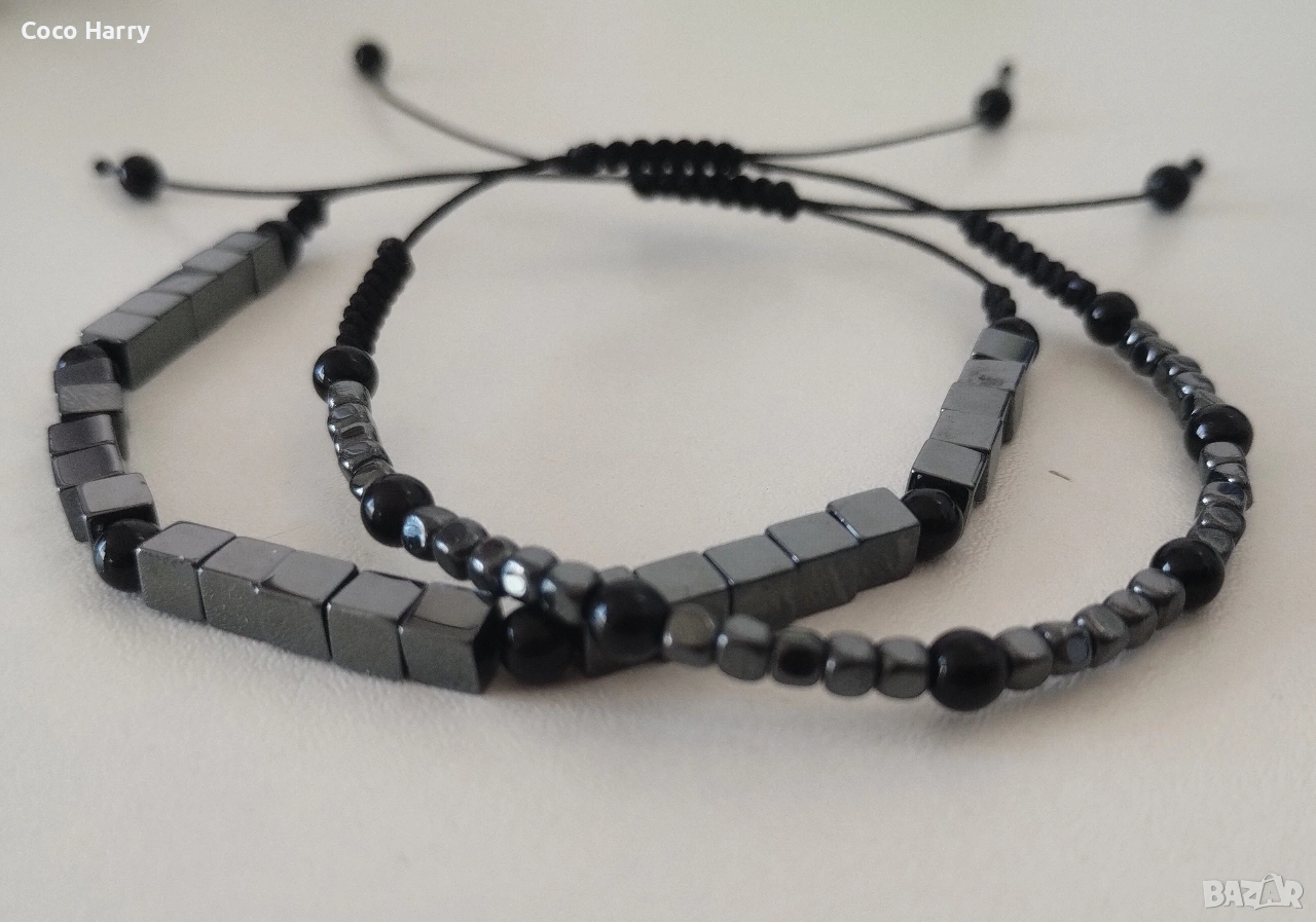 Комплект мъжки гривни с Хематит и черен оникс