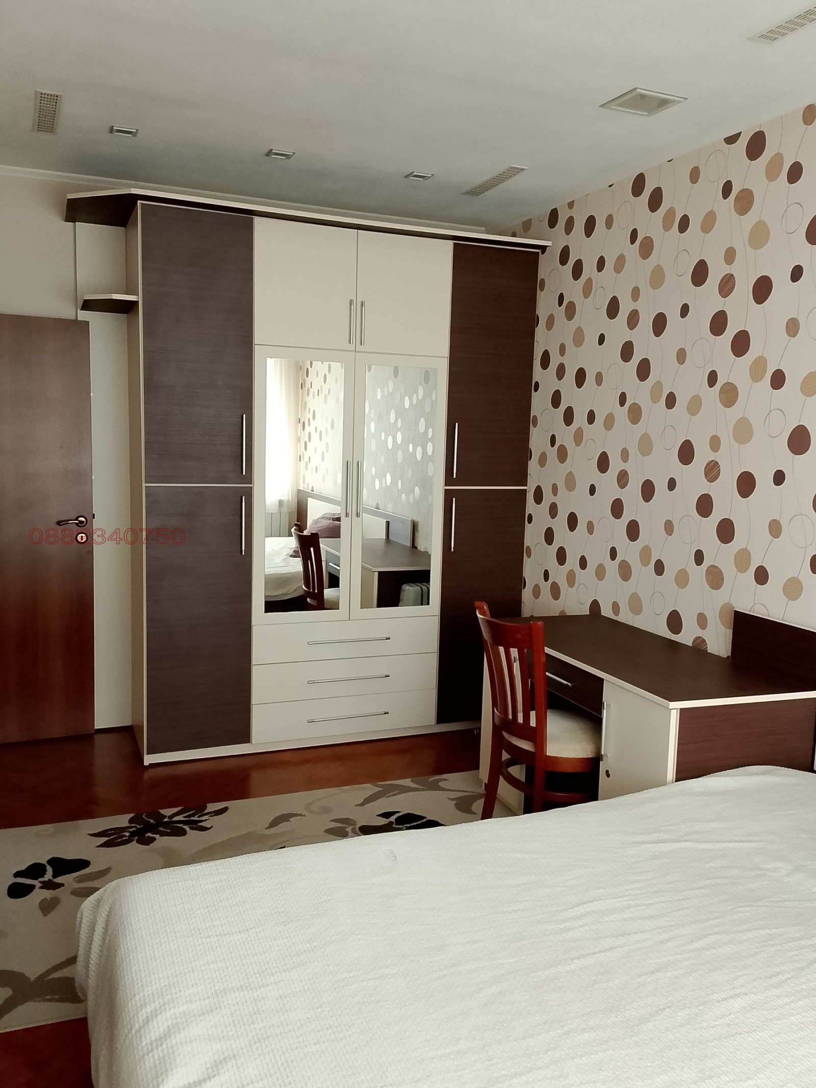 Трети жилищен етаж от масивна триетажна жилищна сграда /близнак/, находяща се в гр. Кюстендил, ул. Гоце Делчев, състоящ се от: коридор, кухня, дневна с трапезария и тераса /изложение изток/, три отделни непреходни спални /изложение юг/, още една тераса /юг/, самостоятелна тоалетна, отделно баня. Етажът не е с преходни помещения, с изложение югоизток. Основно ремонтиран и с подобрения: ПВЦ дограма със стъклопакет, външна топлоизолазия, изградена инсталация с алуминиеви радиатори за ЛО. Напълно обзаведен. Подови настилки във всички стаи: естествен паркет, в коридора и санитарните помещения: теракот. Стени и тавани: Гипсокартон с латекс, вградено LED осветление. Към етажа има една стая в зимничния етаж със площ от 35 кв.м., гараж с канал и чешма на партера в сградата с площ 17,50 кв.м., таван с реална площ на ползване 31 кв.м.. Имотът е с отстъпено право на строеж върху парцела и с реално ползване на северната му незастроена част, обособен с изграден дувар, където са изградени барбекю, външна чешма и сграда със застроена площ от 9 кв.м., в която има тоалетна и технично помещение. Заслужава си да се види. Имотът се продава ДИРЕКТНО ОТ СОБСТВЕНИК!
