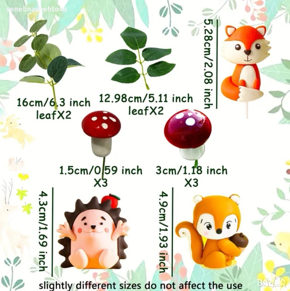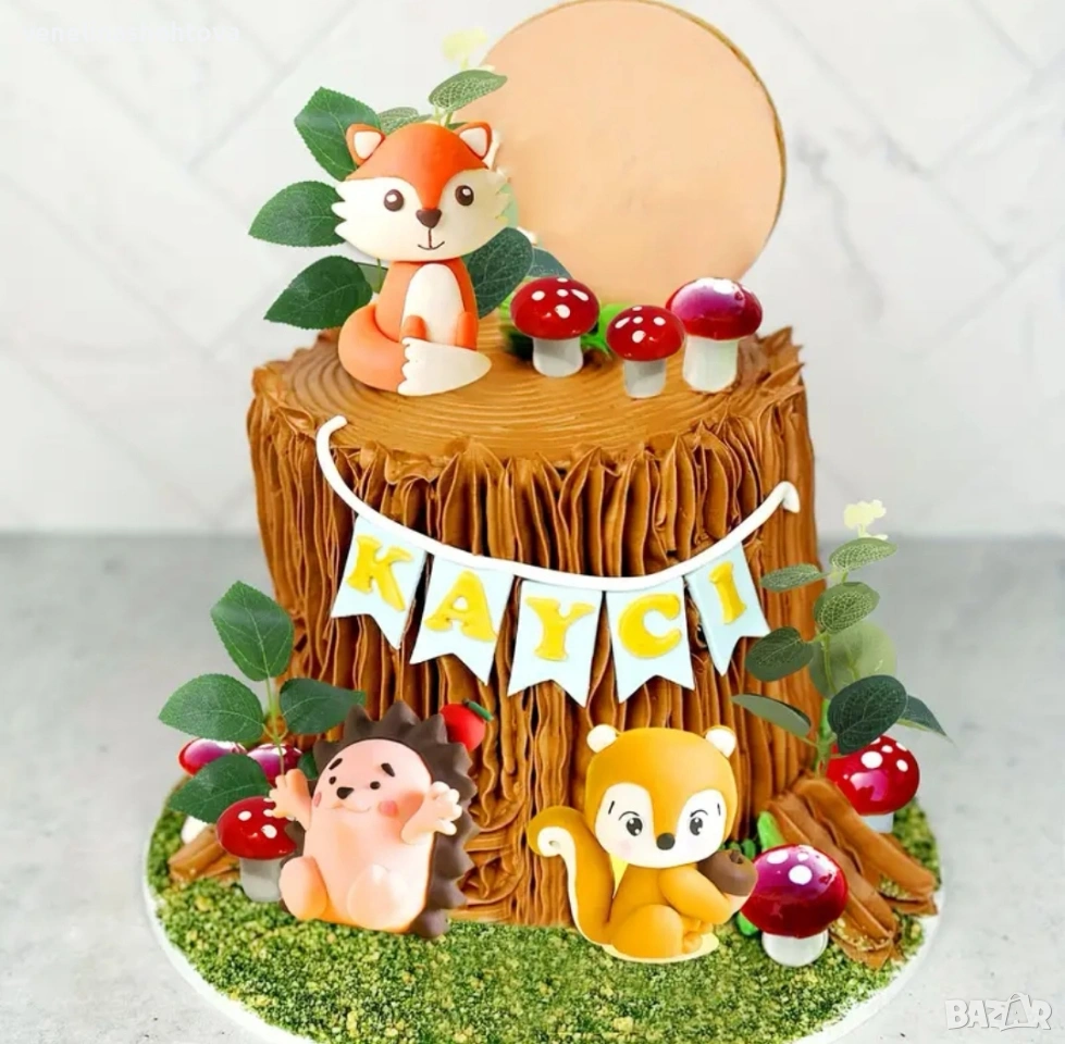 Пластмасови фигурки горски животни лисица таралеж катеричка гъбки клонки за декорация на торта → Обява 53652626