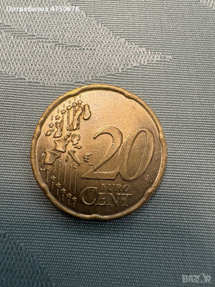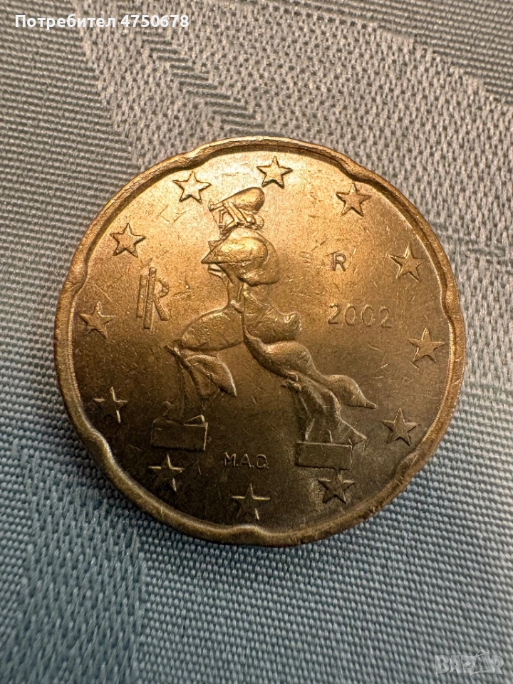 Колекционерска монета 20 цента Италия 2002 с грешки → Обява 53652951