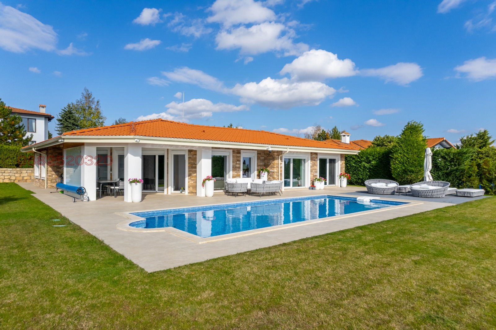 Всички мебели, осветителни тела и градинско обзавеждане (маси, столове, шезлонги) включени в цената