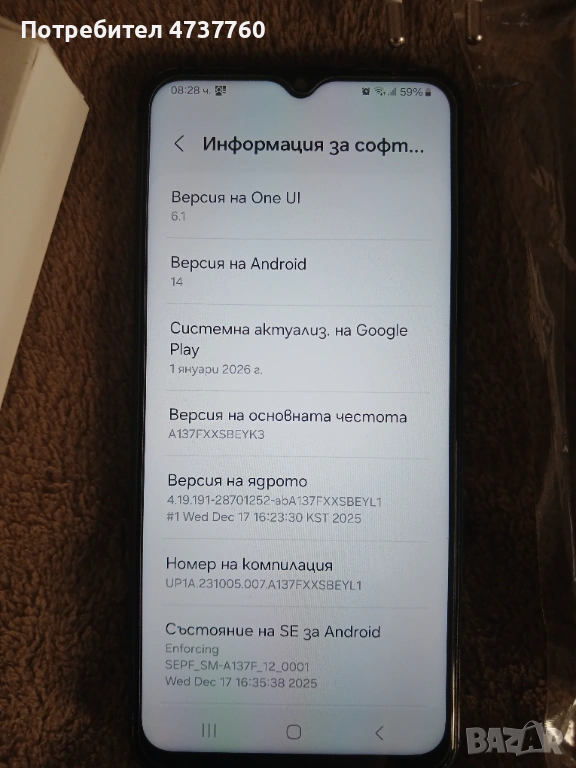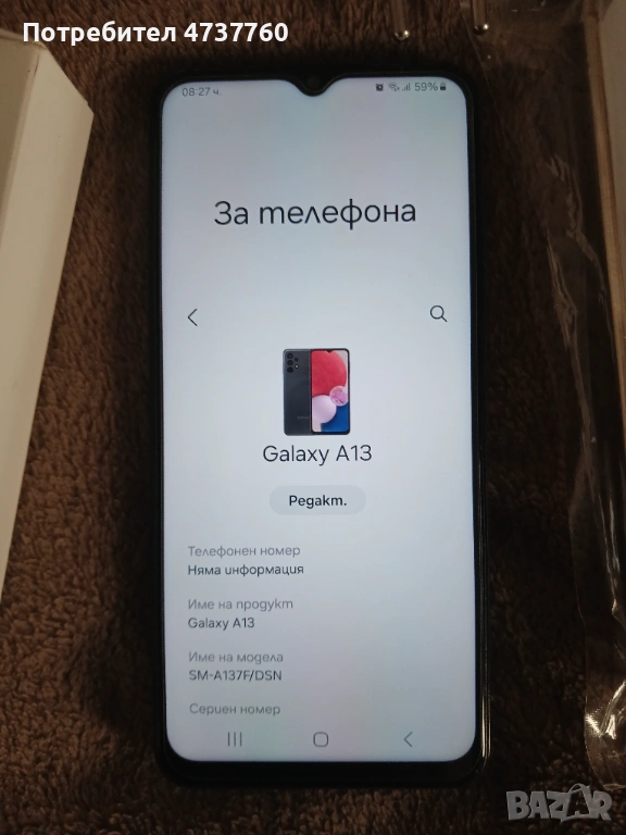 Dual-SIM Samsung Galaxy A13 Dual-SIM , работи с всички оператори и разполага с 4GB RAM и 128GB вградена памет , която може да бъде допълнително увеличена чрез microSD карта. Android 14, One UI 6.1