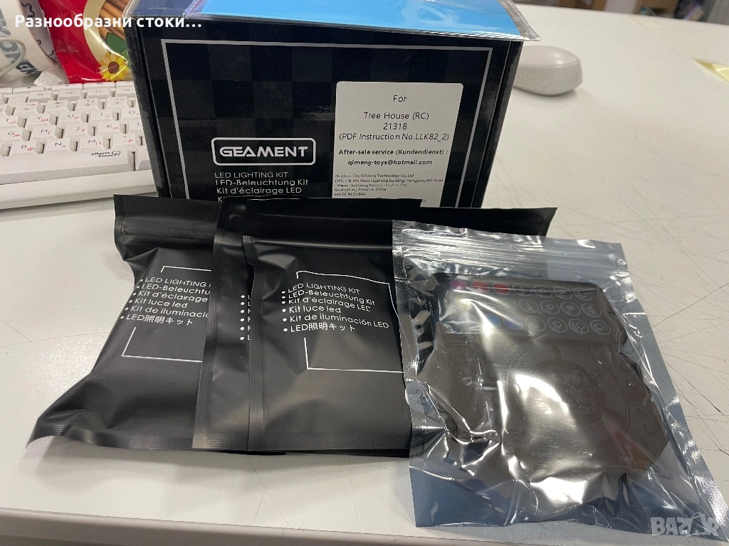 LED светлини на марката Geament, специално проектиран за модела LEGO Ideas Tree House (21318). Това е версията с дистанционно управление (RC), която позволява лесна смяна на режимите на светене.