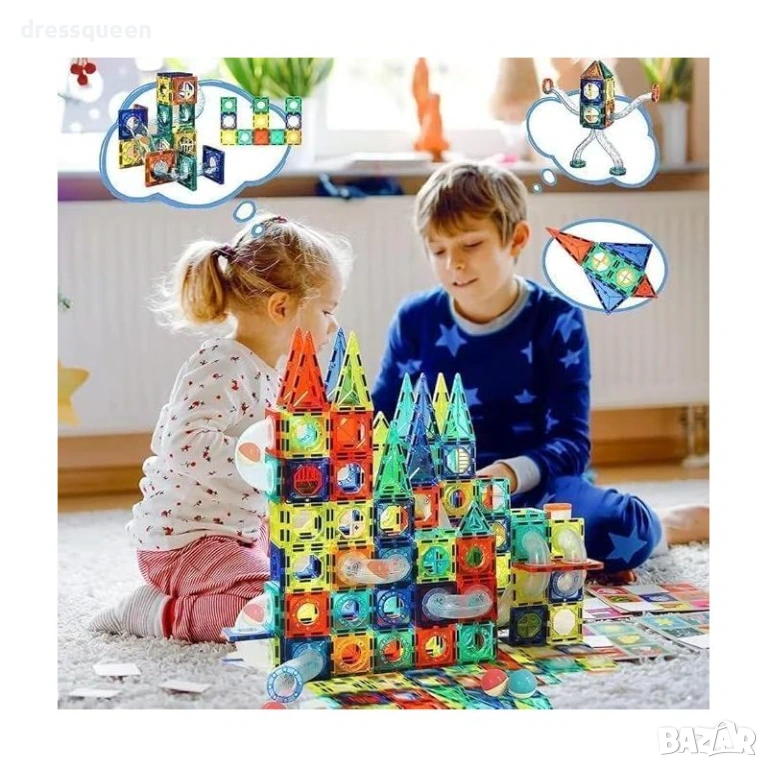 Изградете мечтаната писта с нашия Магнитен конструктор с тръби и топчета!