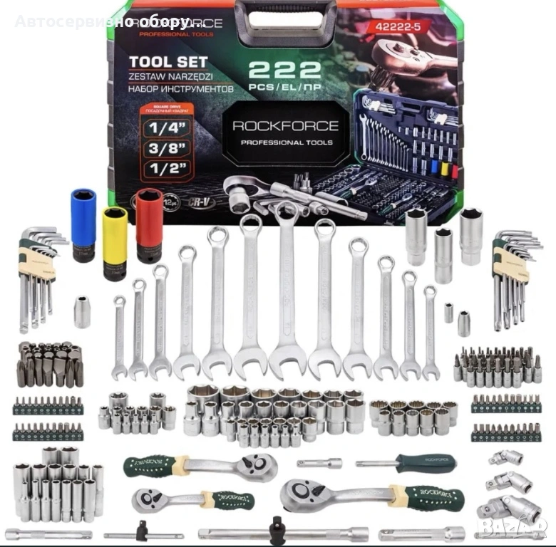 Комплект инструменти – 222 части • Тресчотки : 1/4" • 3/8" • 1/2"