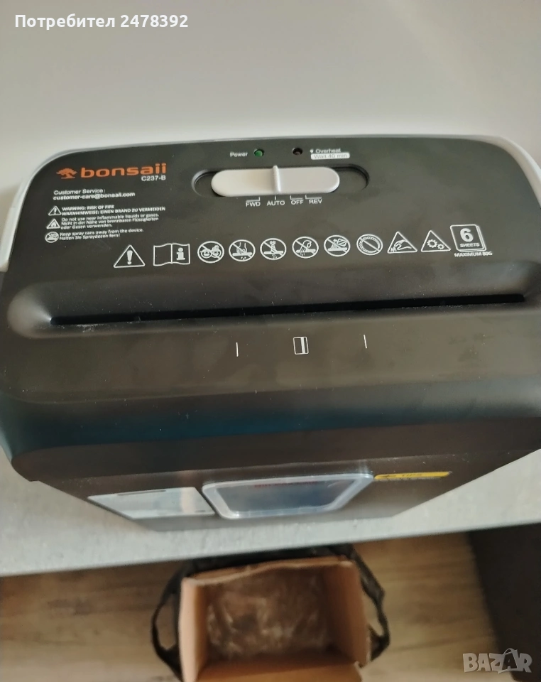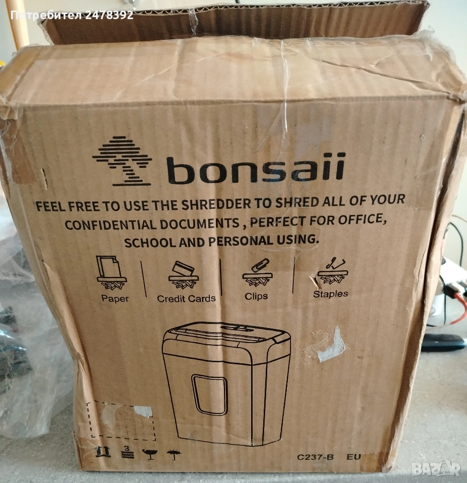 Bonsaii Paper Shredder C237-B е компактен cross-cut (кръстосано рязане) шредер, предназначен за домашна употреба и малки офиси. Той предлага ниво на сигурност P-4, като нарязва хартията на парчета с размери приблизително 5 x 18 мм.