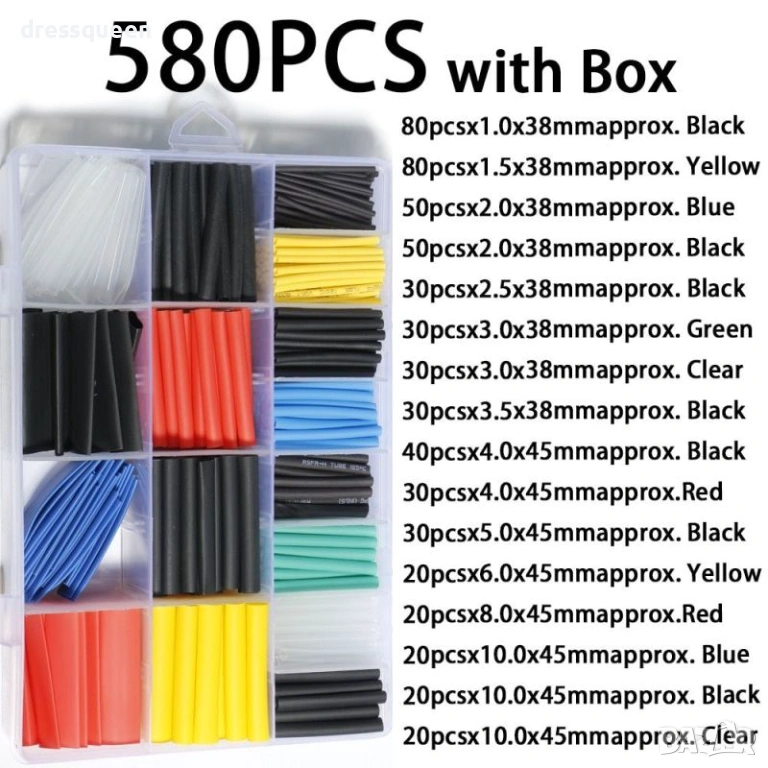Този комплект термосвиваем шлаух за кабели от 580 части е идеалното решение за всяка работилница или домашен майстор.