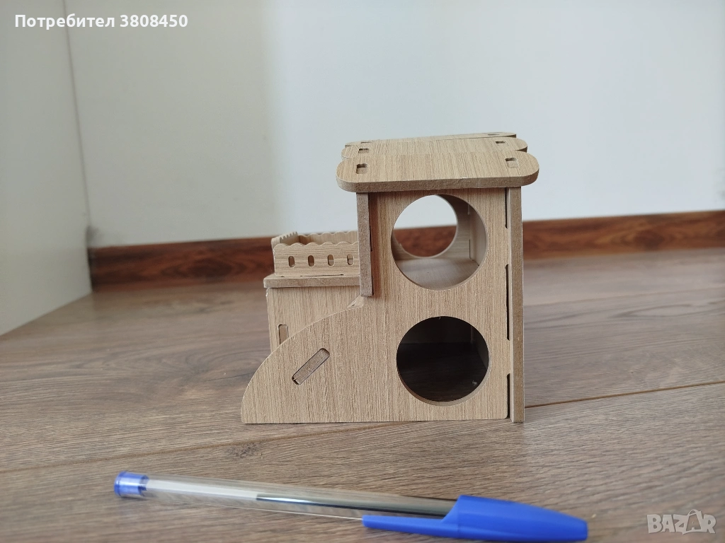 Продавам дървена сглобяема къщичка за хамстери с малки размери.
