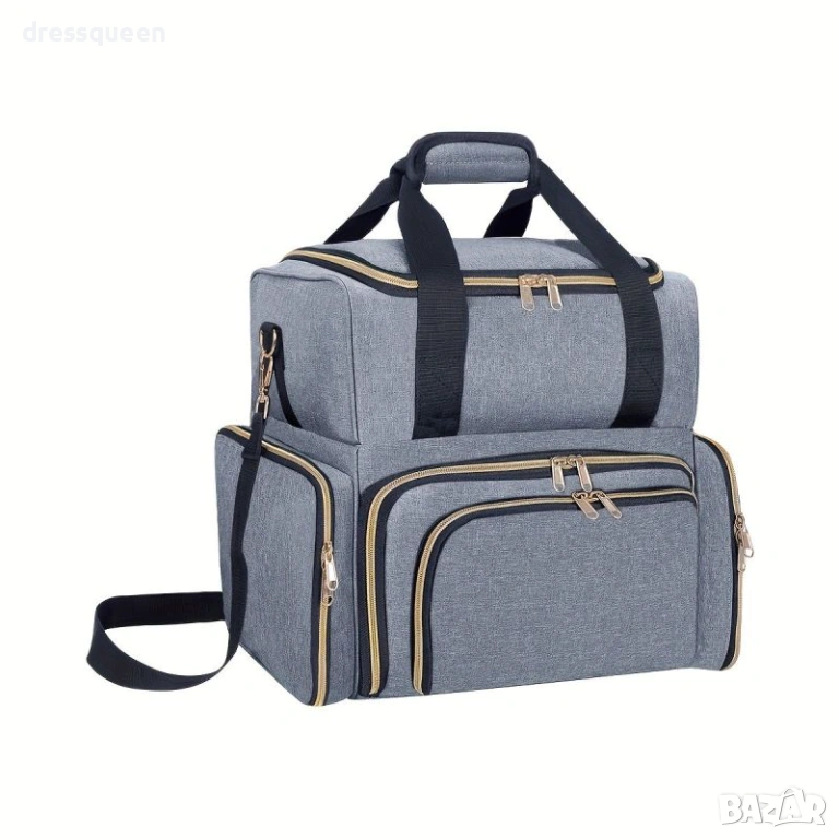 Пренасянето е лесно и удобно с помощта на здравата дръжка или дългата регулируема презрамка.