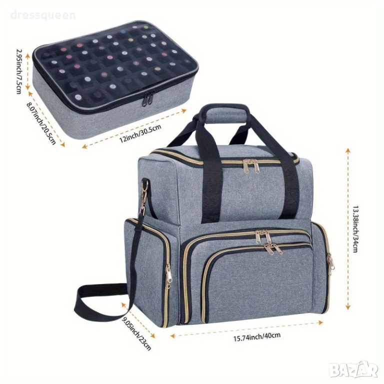 Комплектът е напълно оборудван с една чанта, две вложки за лакове и функционална презрамка за рамо.