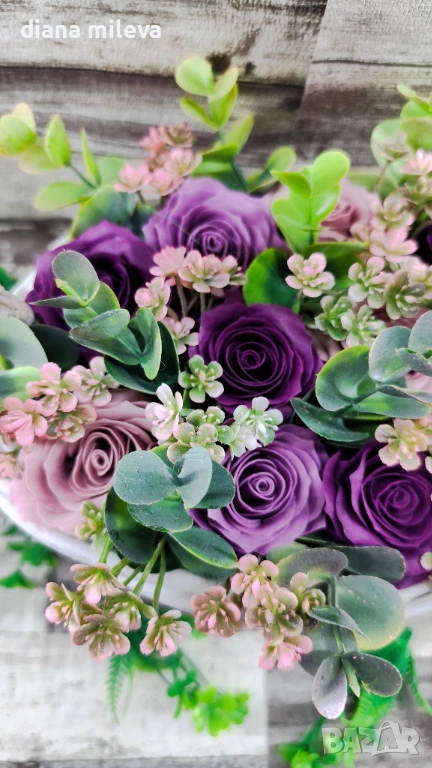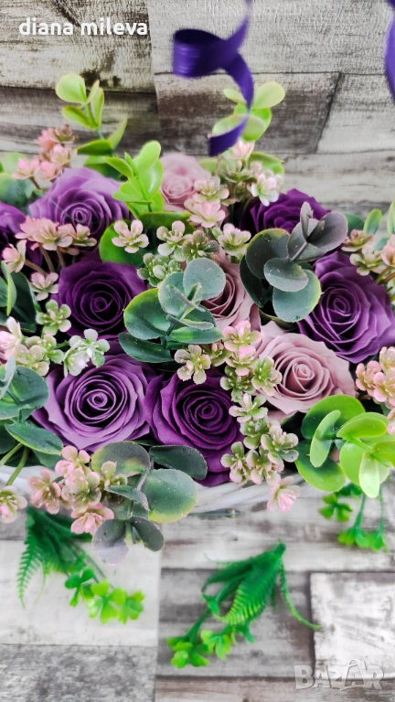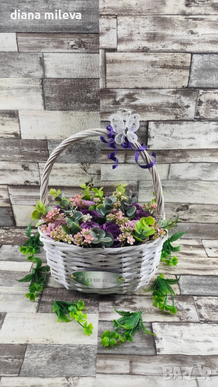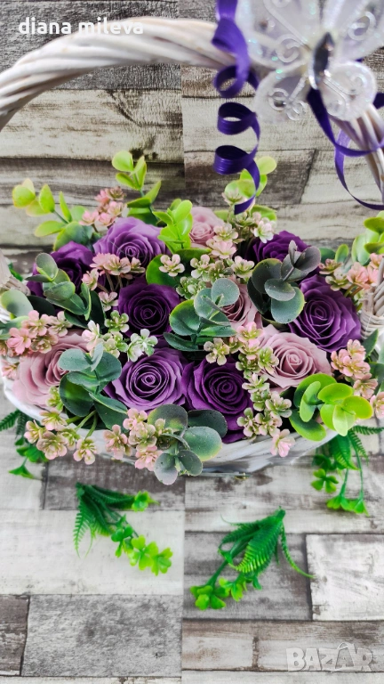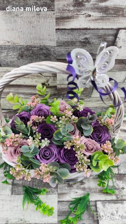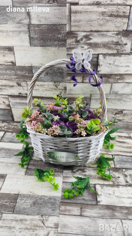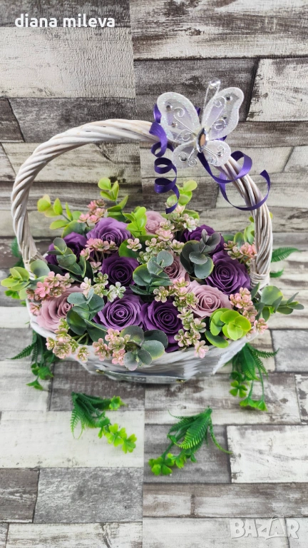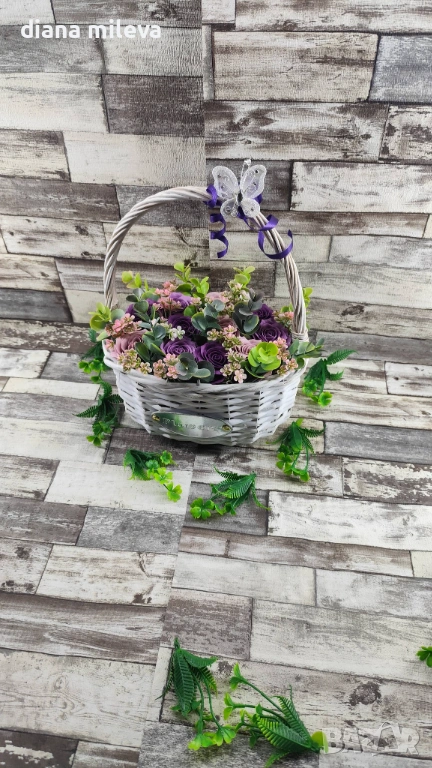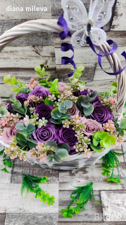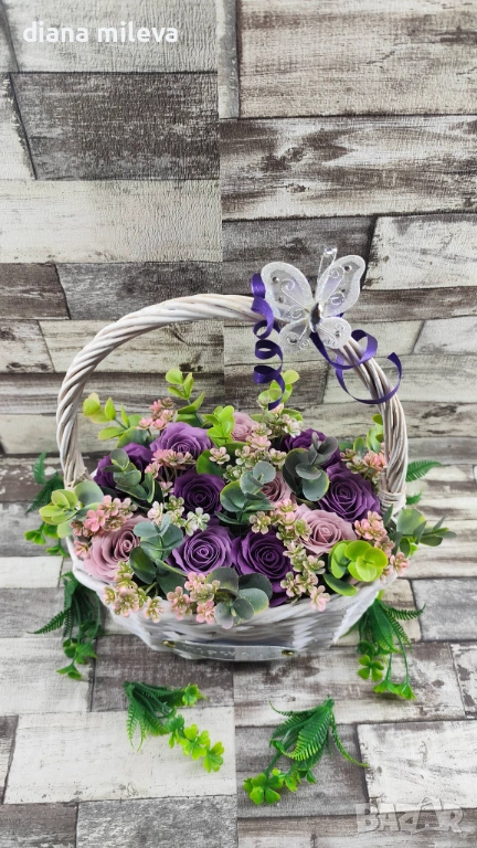 Кошница в лилаво с рози от пластичен сапун!! → Обява 53653950