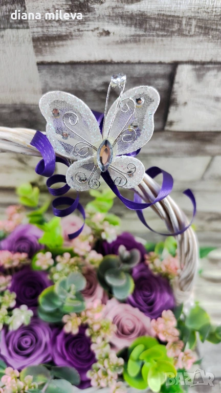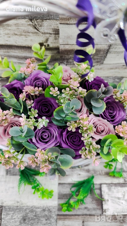 Продава се Кошница в лилаво с рози от пластичен сапун!!