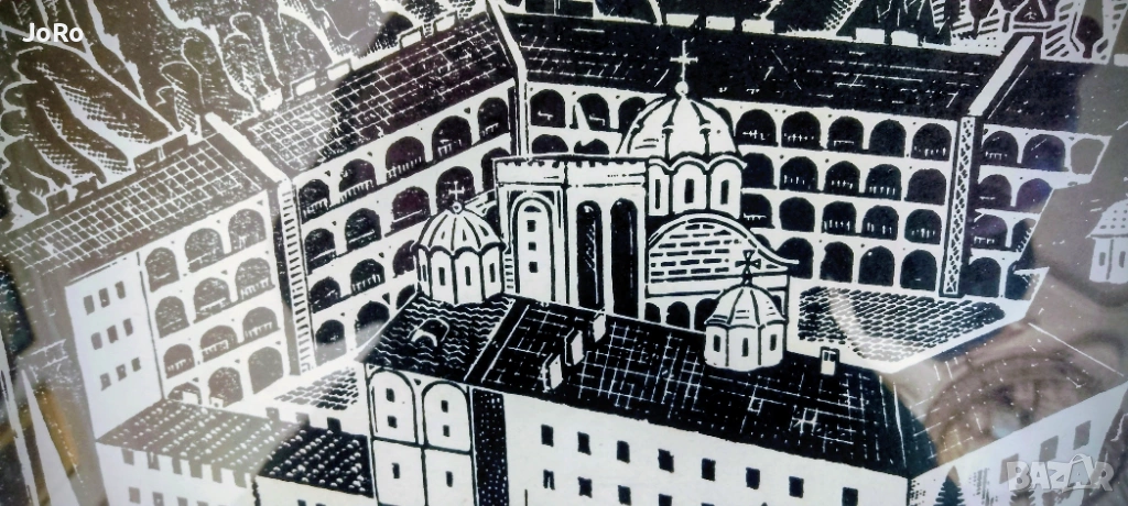 Васил Захариев - "Рилски Манастир" гравюра на дърво. → Обява 53654031