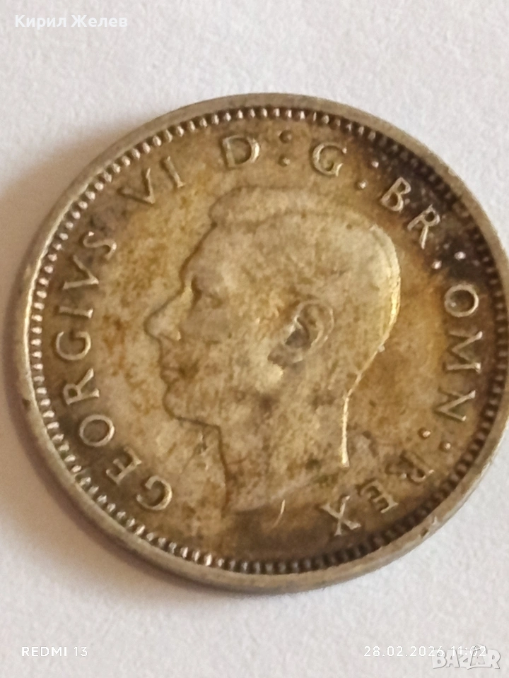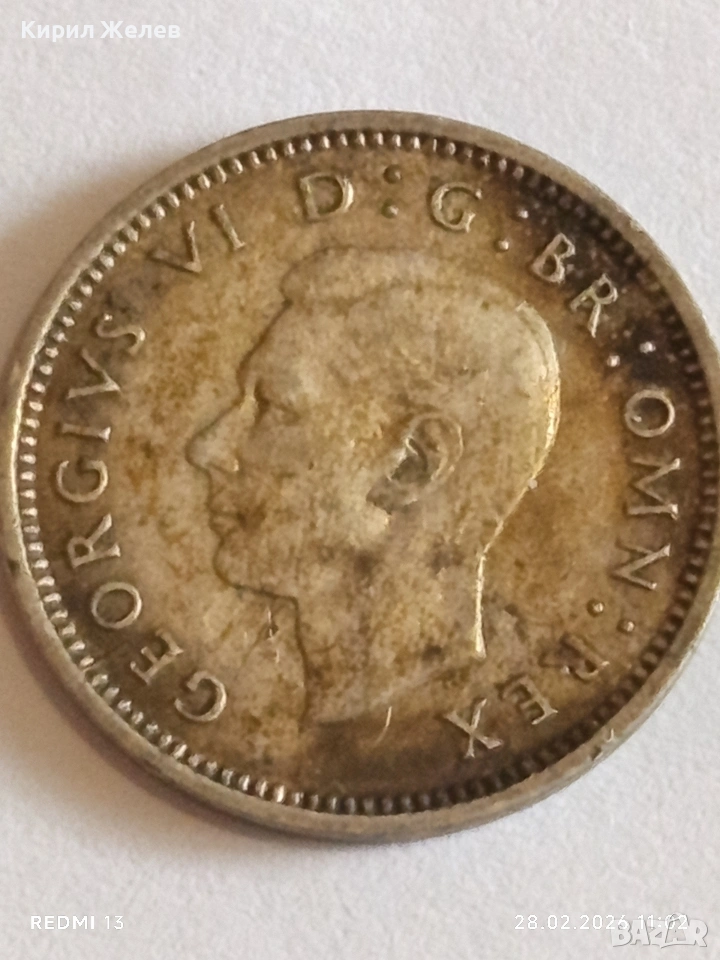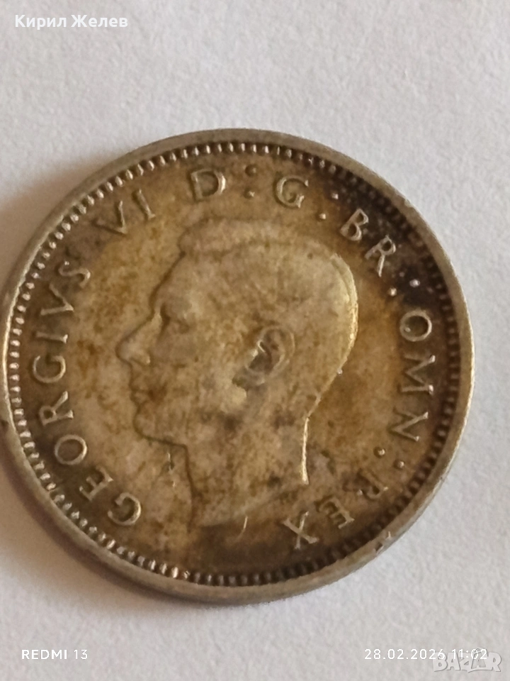 Сребърна монета 3 пенса 1939г. Британия Крал Джордж шести за КОЛЕКЦИЯ 41787