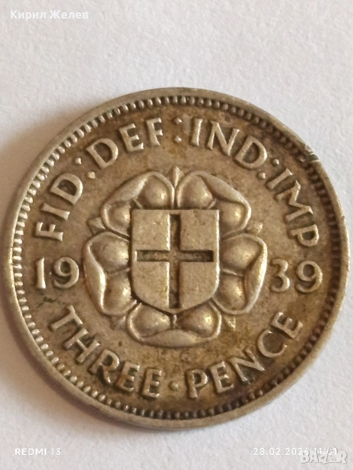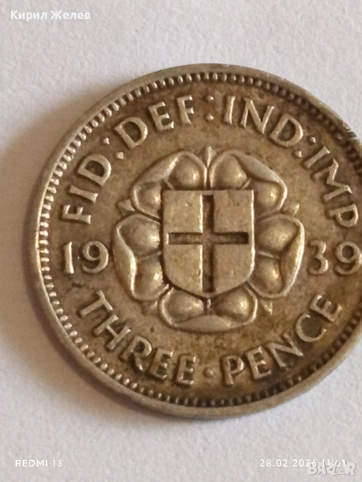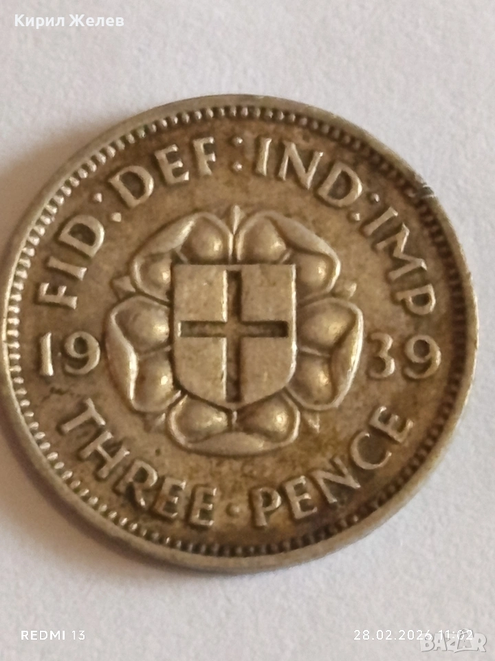 Сребърна монета 3 пенса 1939г. Британия Крал Джордж шести за КОЛЕКЦИЯ 41787 → Обява 53654162