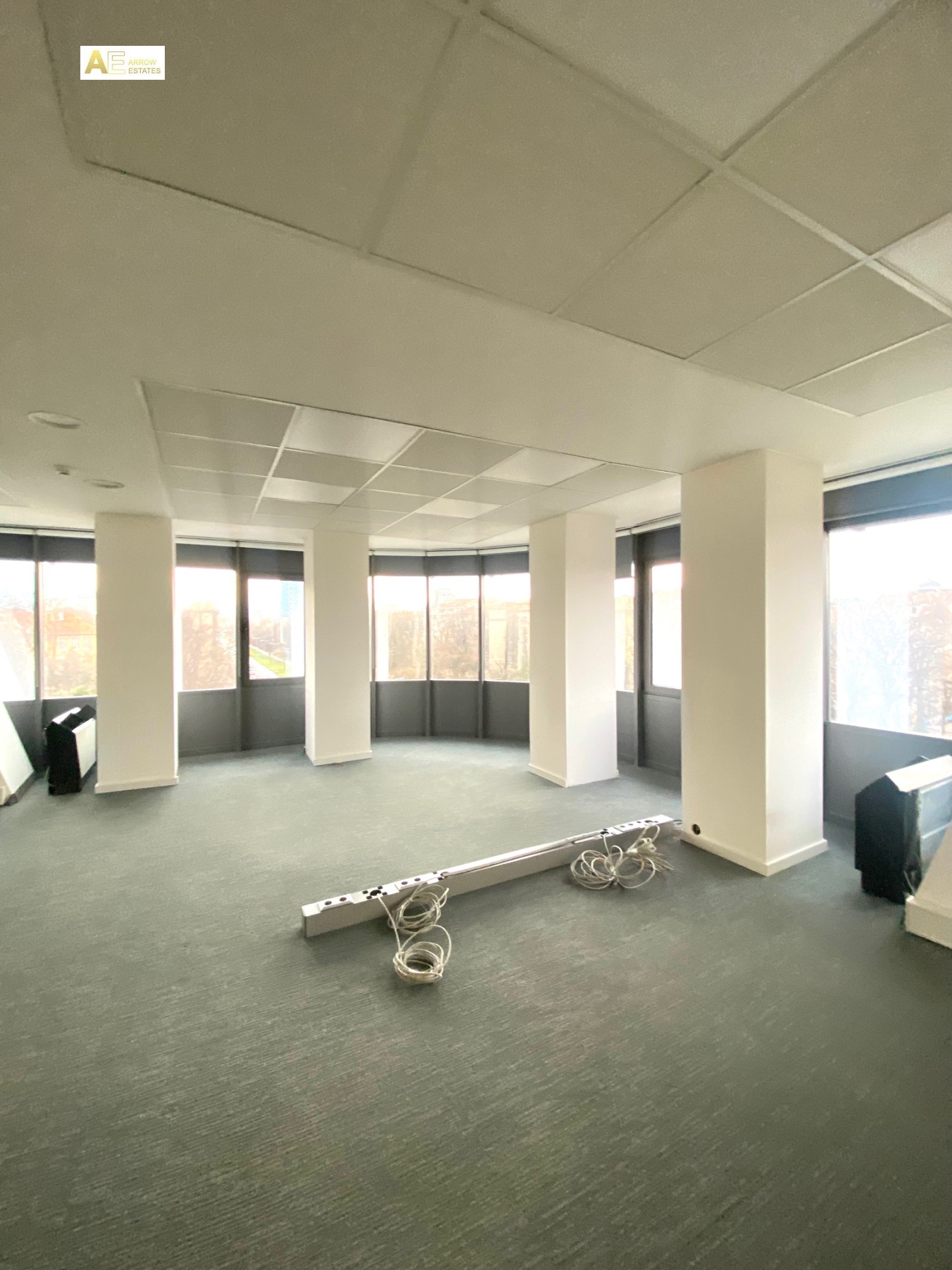 Офис разположен в представителна и модерна офис сграда в близост до НДК.Достъпа до офисите в сградата е контролиран с рецепция,картов и видеонаблюдение 24ч/7дни.Разпределението на офисът е фоайе ,голямо помещение тип отворено пространство,5 кабинета,тоалетни,складово помещение ,кухненски бокс и сървърно помещение.Изградени системи в сградата са интернет окабеляване и климатизация..В района се разположени други административни и търговски сгради ,държавни институции и организации.Ресторанти и заведения за хранене.Метростанция Васил Левски и НДК,спирки на градски транспорт в непосредствена близост.