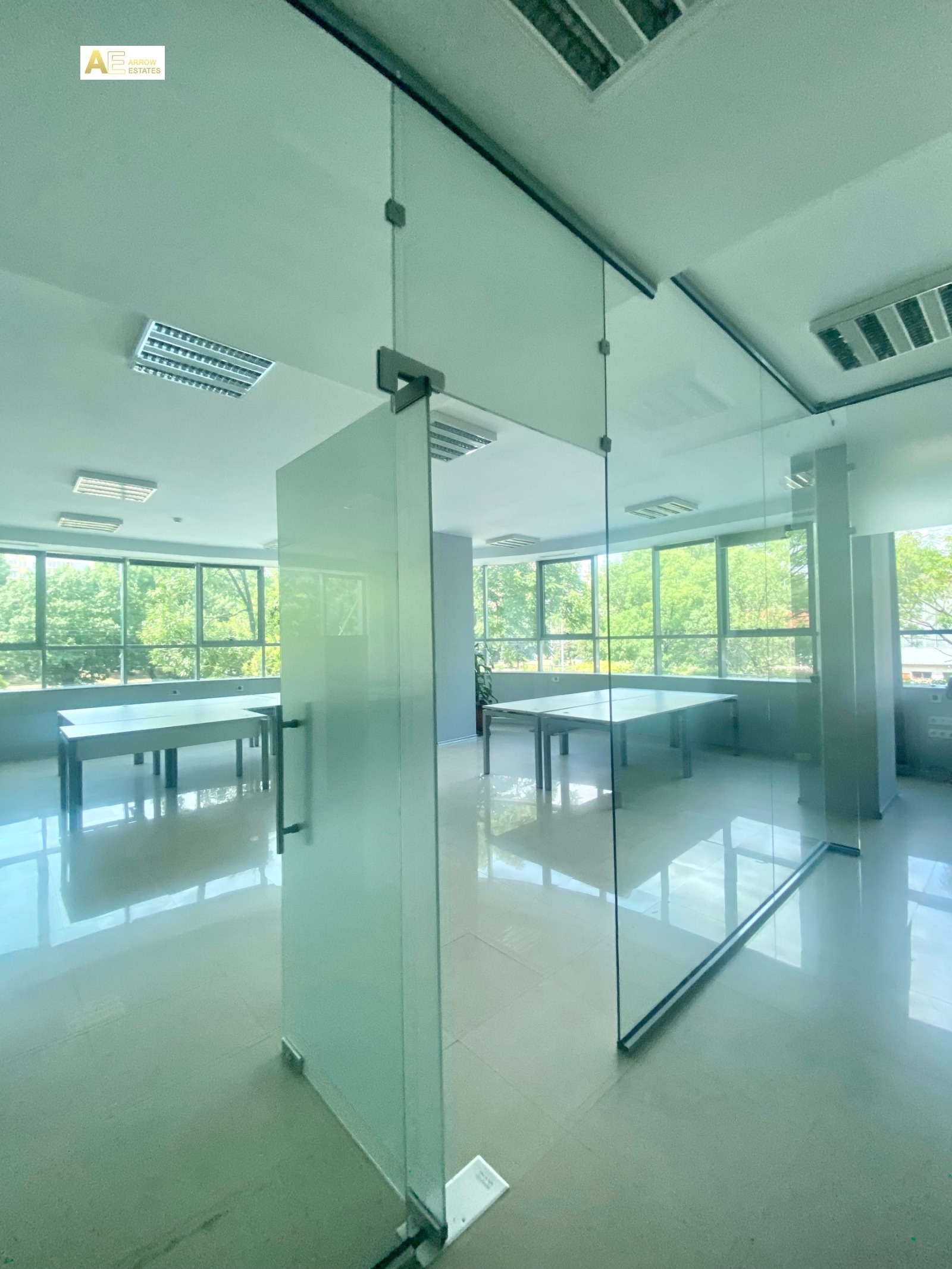 Преставителен офис в луксозна офис сграда разположена на комуникативна локация в близост до идеален център и НДК.Офис сграда е със денонощна охрана ,видеонаблюдение и контрол на достъпа. Подова настилка е гранитогрес,ламинат, стени латекс, централно отопление и климатизация, шумоизолация, санитарен възел, , луксозни общи части.Възможност за наемане на подземни паркоместа.В сградата има заведение за хранене ,около сграда други бизнес сгради и заведения за хранене,пред сградата спирка на градски транспорт трамвай,автобуси и нова метростанция на 5 мин пешеходно разстояние.