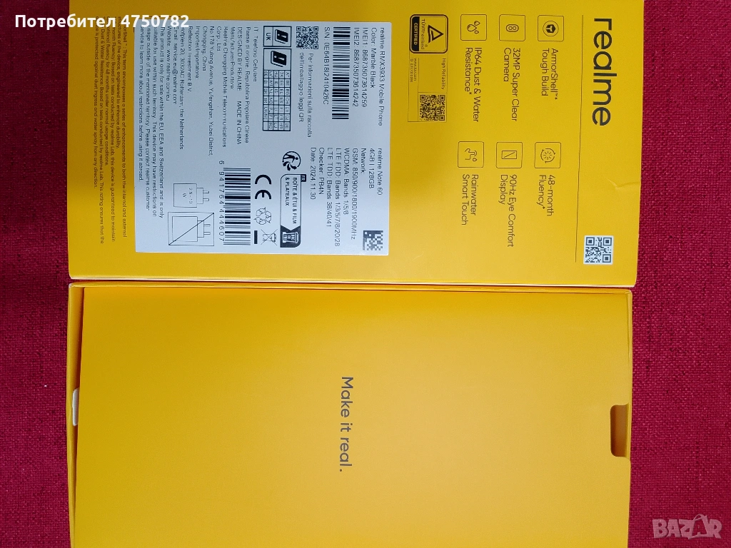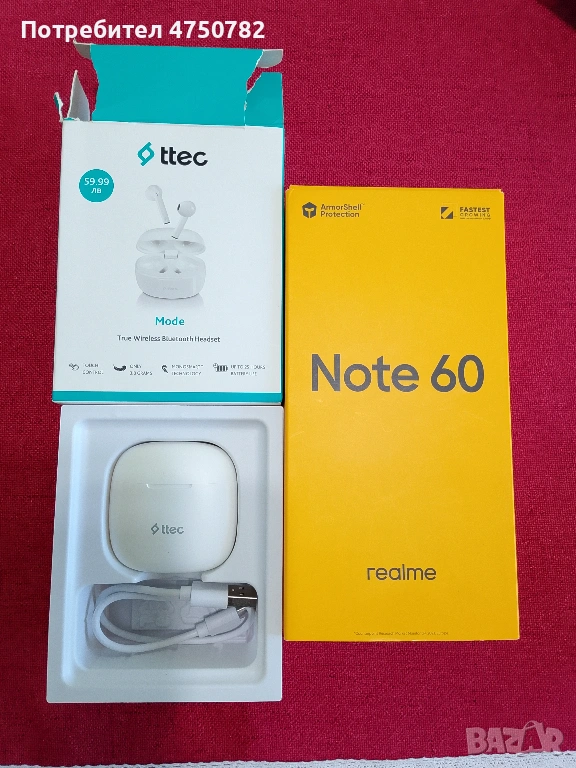 Realme Note 60,RAM 4,0 GB + 8,0 GB .Модел RMX 3999,с две СИМ карти с безжични слушалки /чисто нови, не