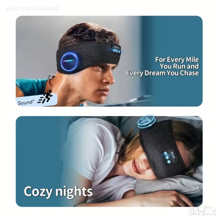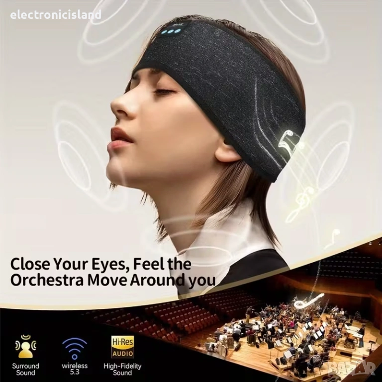 🎧 3-в-1 Блутут Маска за Сън и Спортна Лента с вградени Слушалки – Bluetooth 5.0